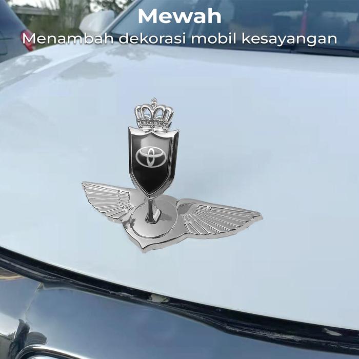[Star]Car Emblem Hiasan Logo Kap Mobil Elegan Berkualitas Dekorasi Kap Mobil Desain Mahkota Dengan Sayap - Biru