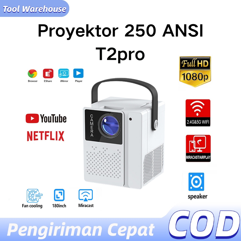 T2PRO PROYEKTOR 250 ANSI PORTABLE HOME THEATER PROYEKTOR DUKUNGAN UNTUK TERHUBUNG KE LAPTOP