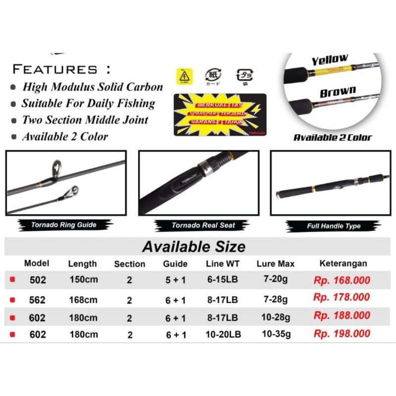 joran tornado ikan bawal 150 165 180 solid carbon 502 562 602 feet