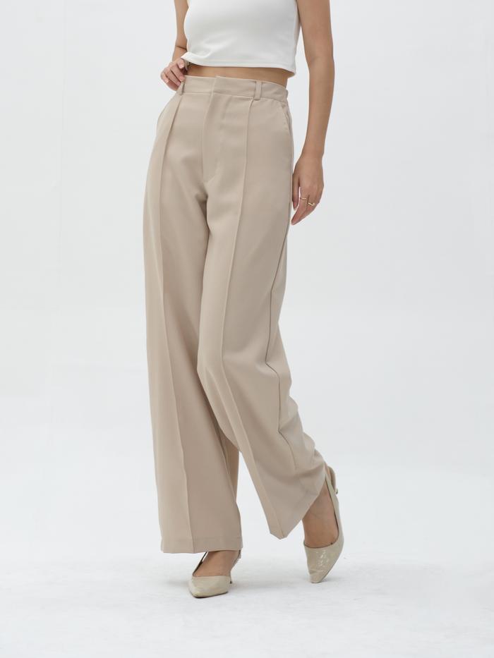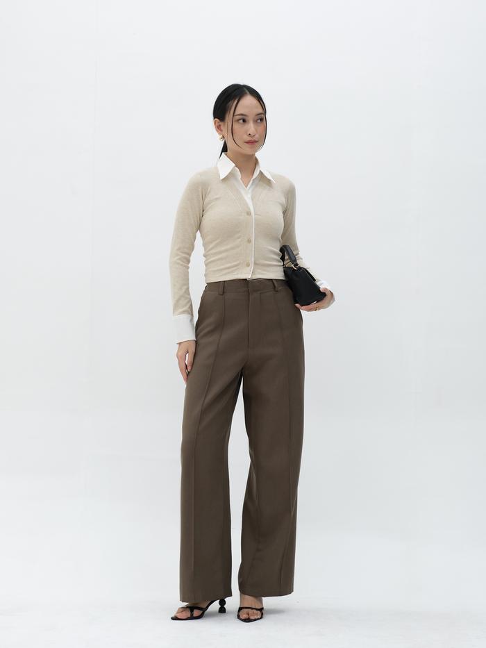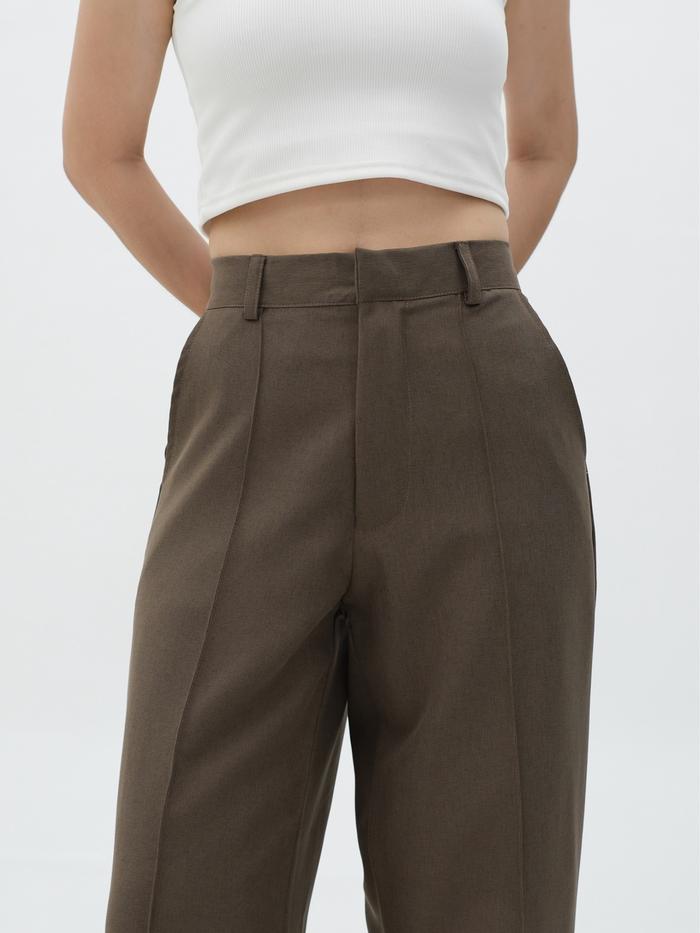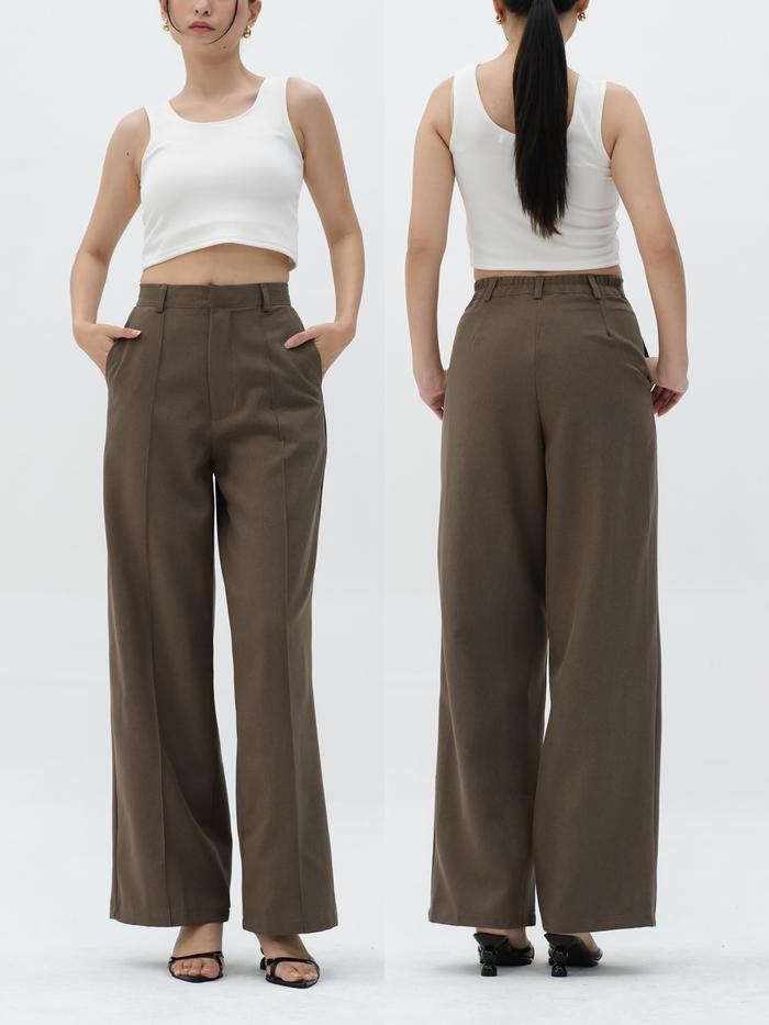 FLASH SALE HIGH WAIST PANTS WANITA ORION PINTUCK PANTS HULM BROWN M
