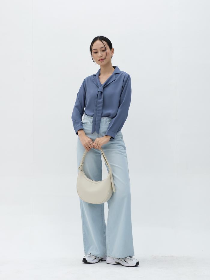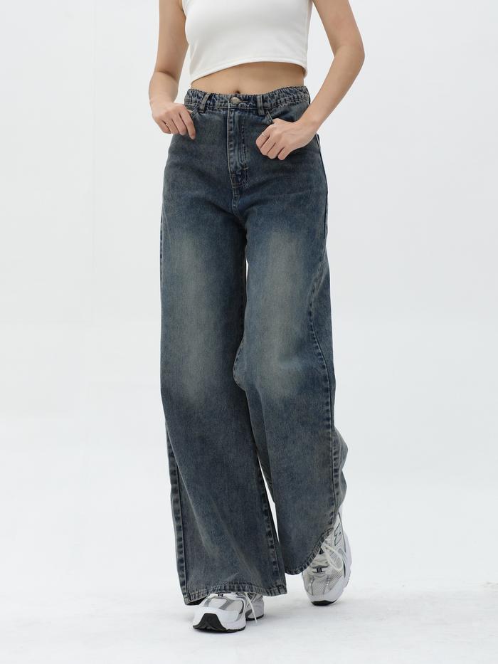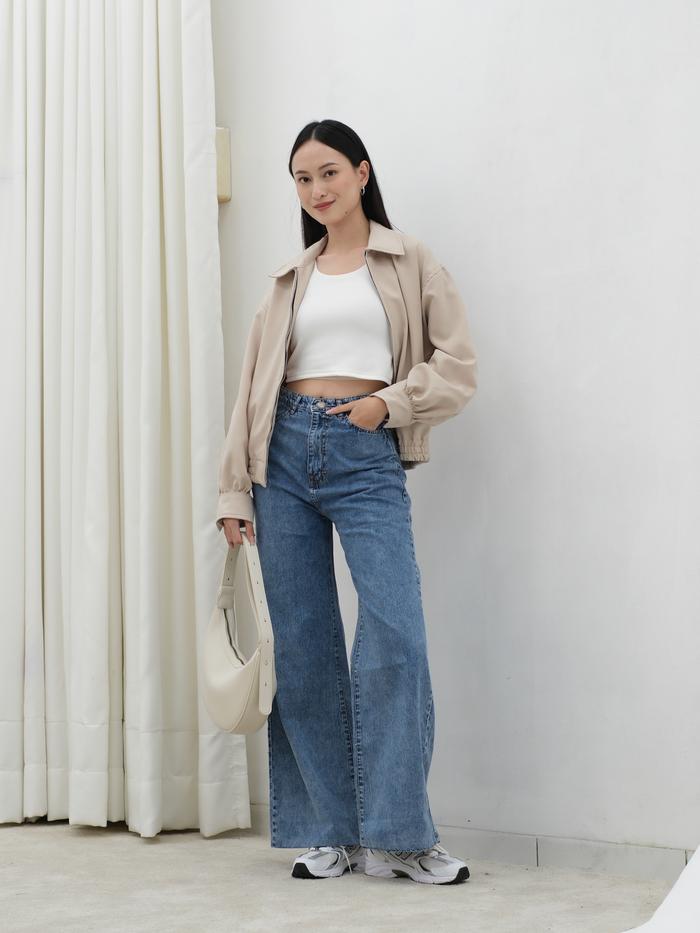 FLASH SALE HIGH WAIST WIDE JEANS WANITA OSLO WIDE JEANS HULM RETRO BLUE M