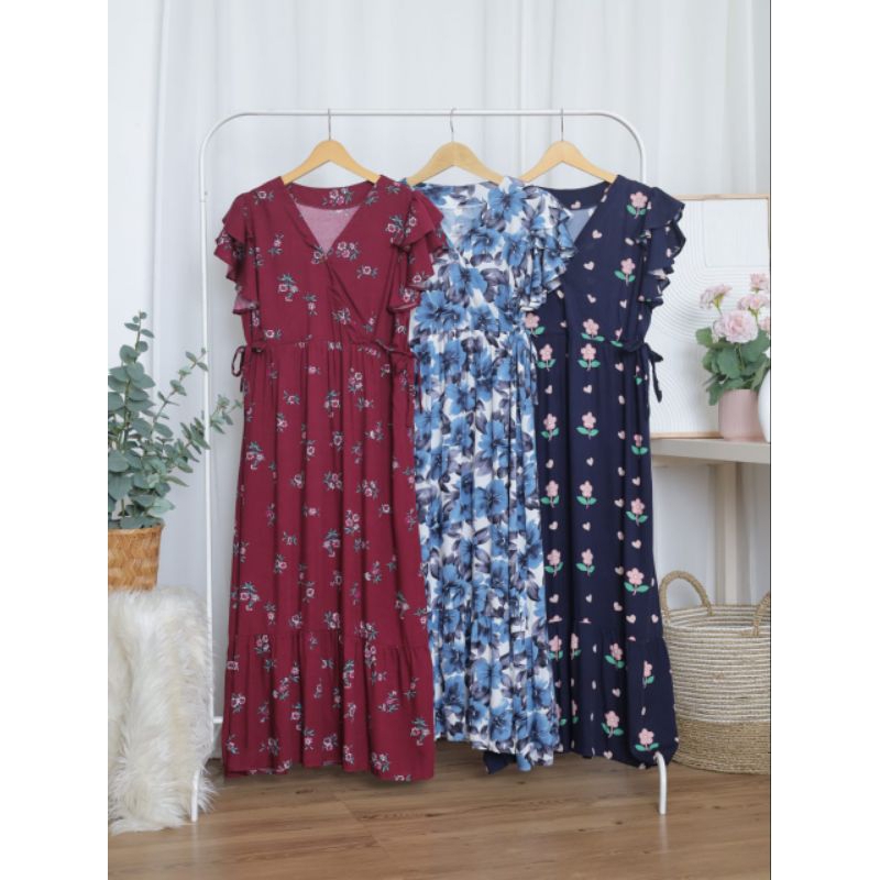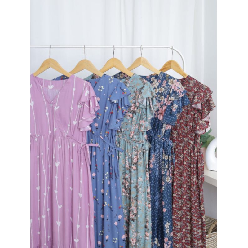 FATMA DRESS DASTER KIMONO PANJANG SEMATAKAKI RAYON PREMIUM/ HOMEDRESS KEKINIAN RUFFLE KANCING BUSUI BUMIL FRIENDLY