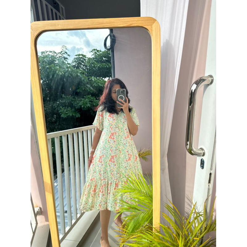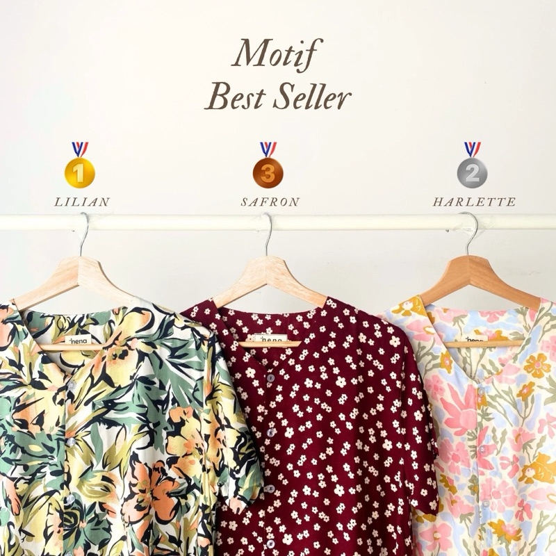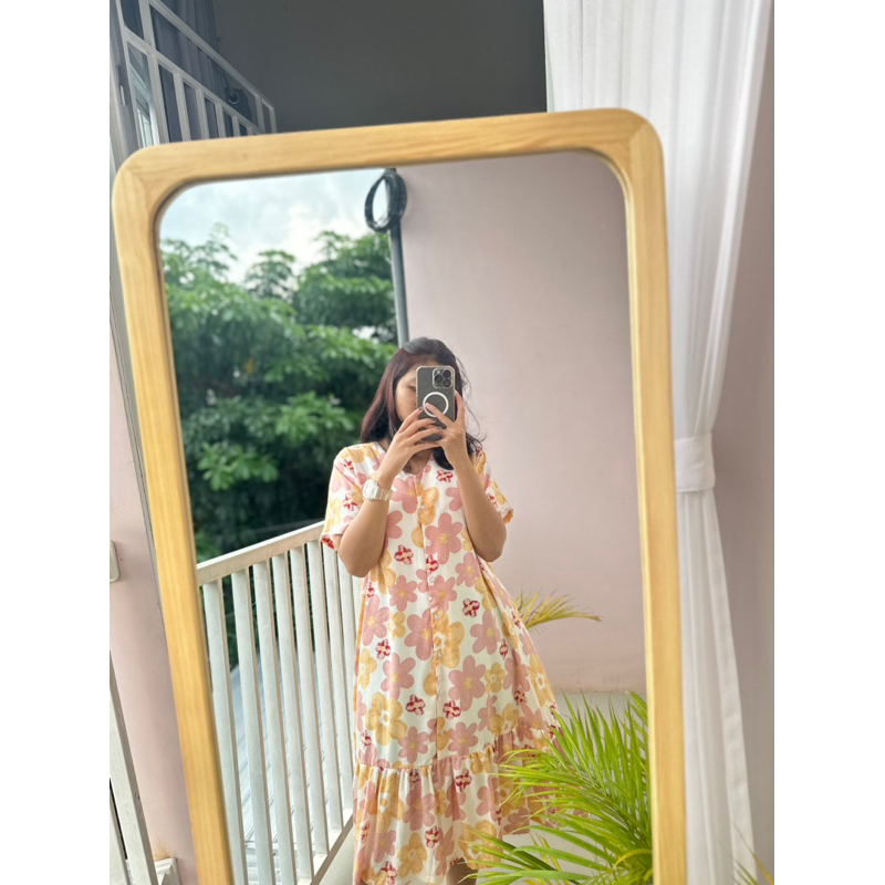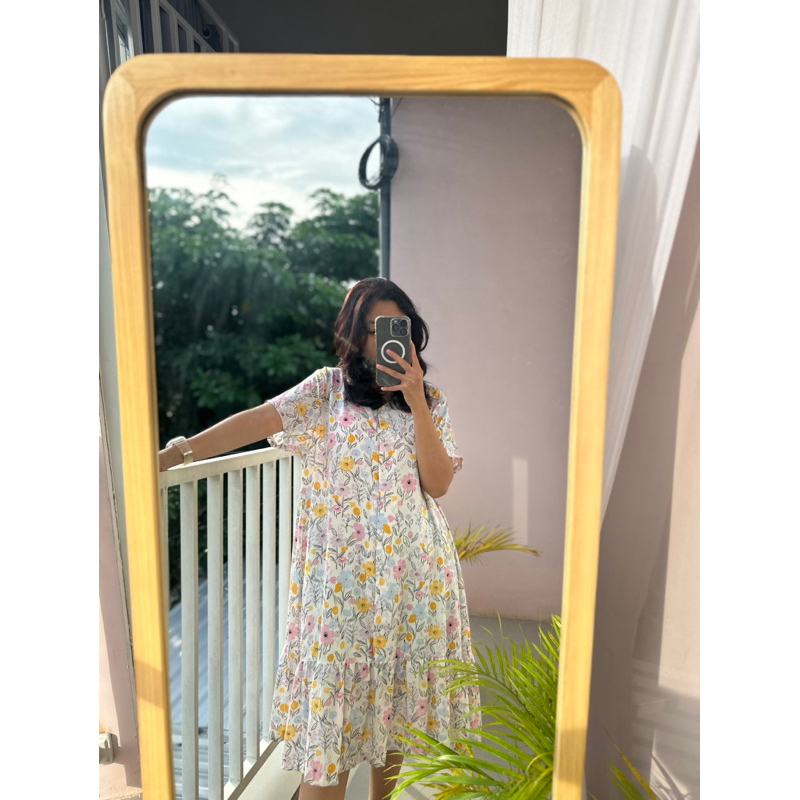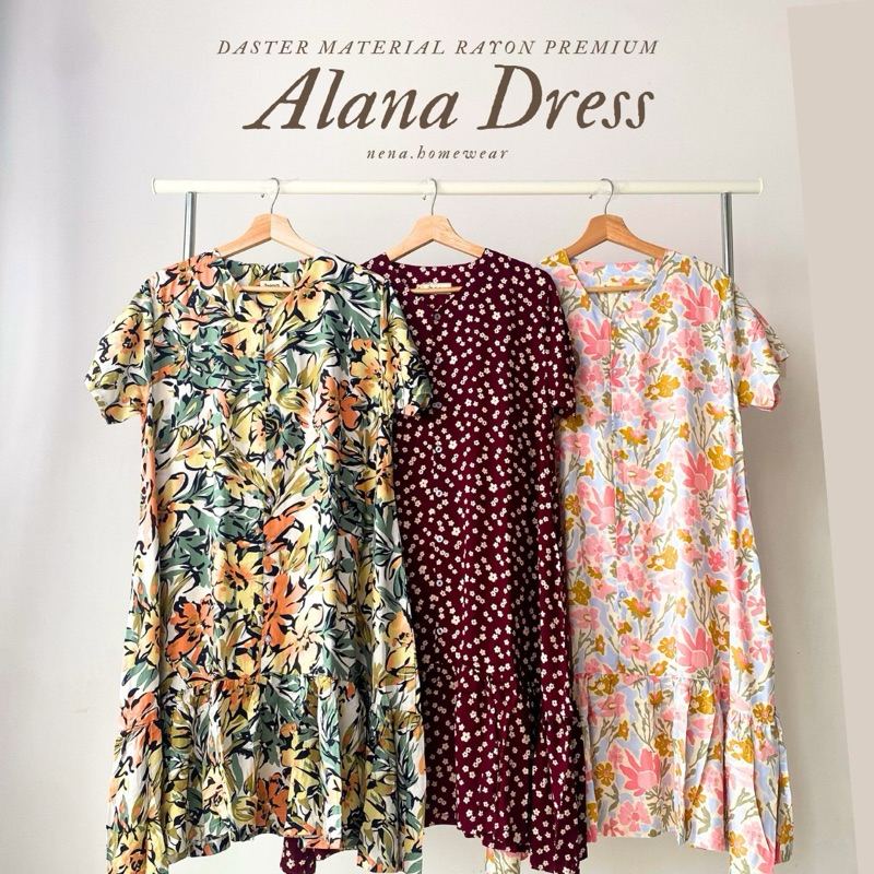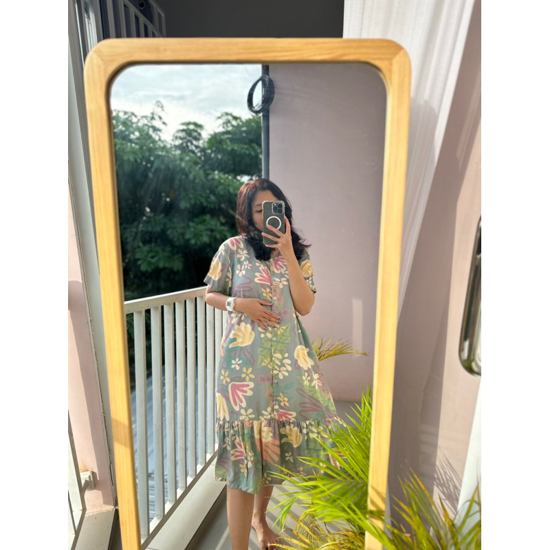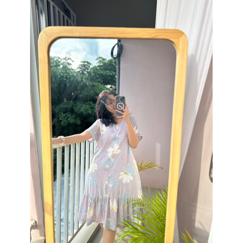 nena.homewear | Alana Dress | Daster | Piyama Dress | Night Gown | Bahan Rayon Motif Premium |Detail Ruffle Dan Kancing