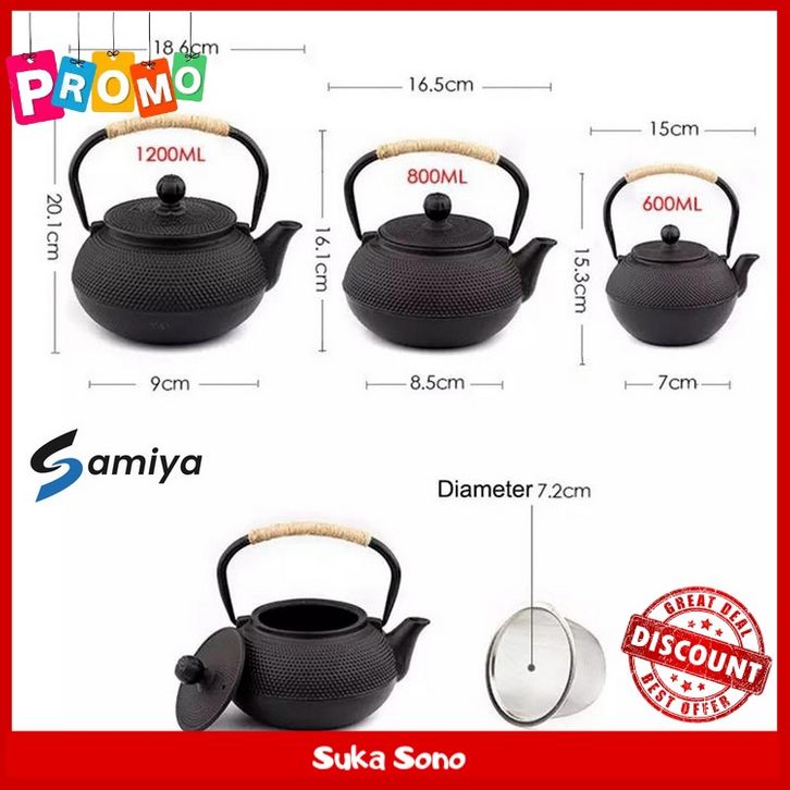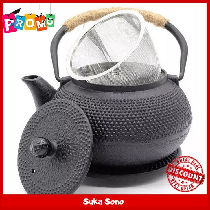teko teh air kopi iron pot japanese classic style / iron tea pot kettle black / teapot hitam infuser