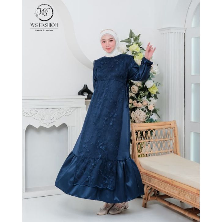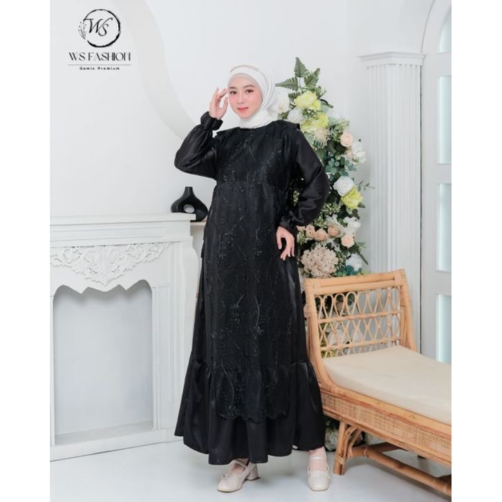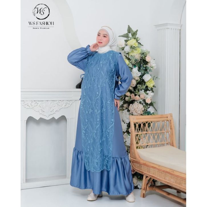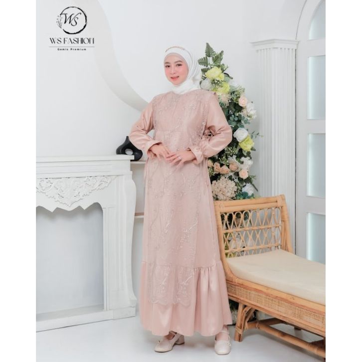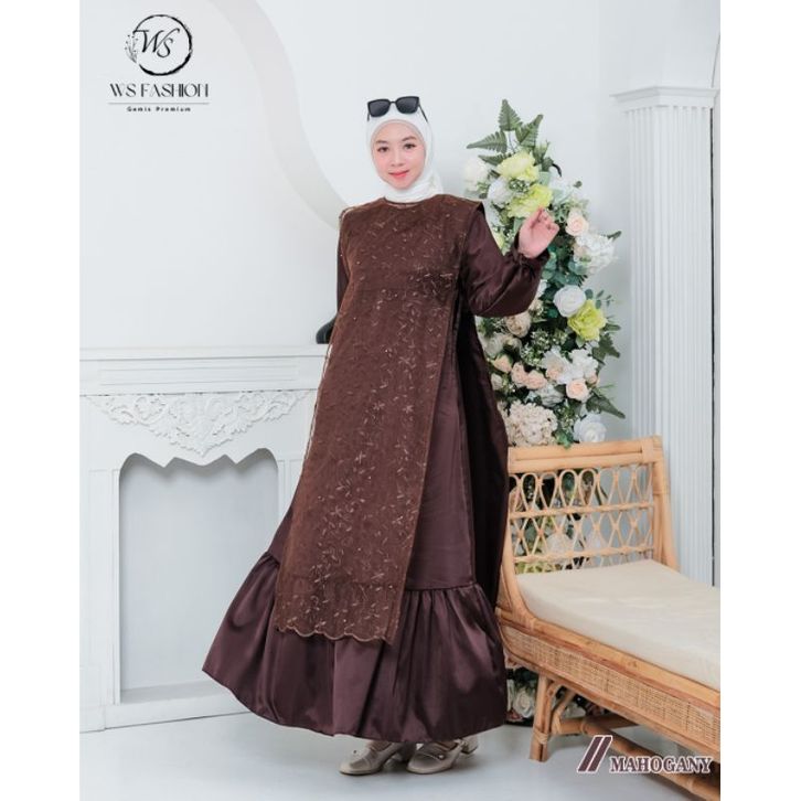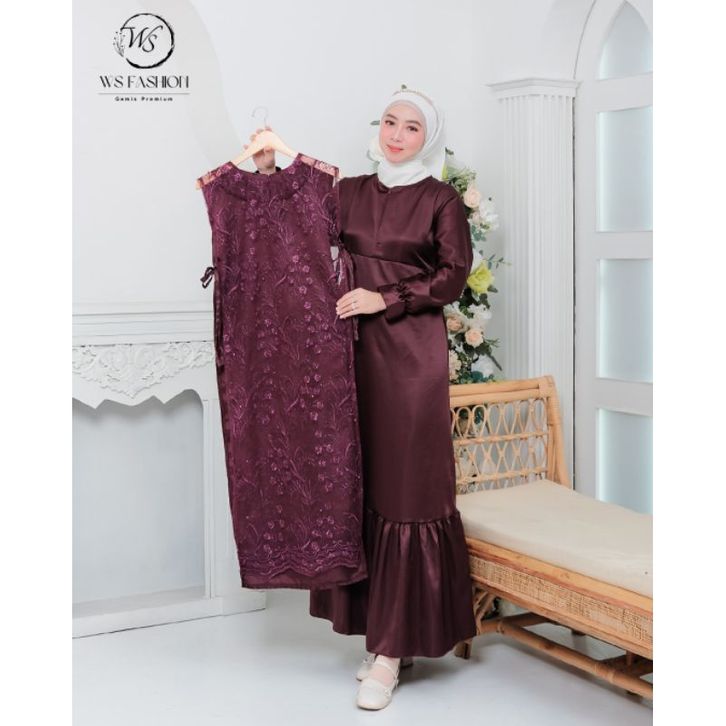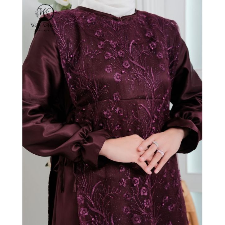 sahana dress gamis pesta wanita terbaru 2025 bahan velvet mix brukat gamis dress burgundy
