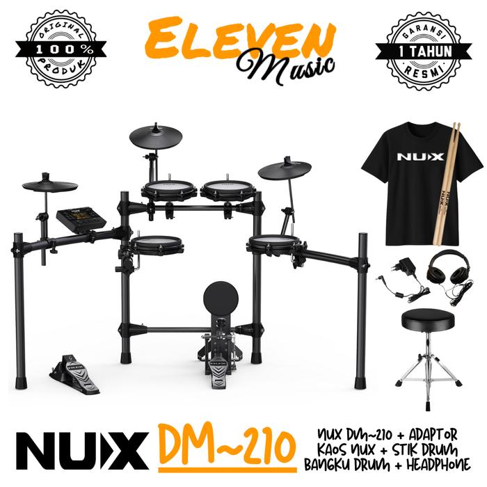 Paketan NUX DM-210 DM210 DM 210 Digital Drum Elektrik dengan Bangku Drum, Headphone, Kaos NUX,