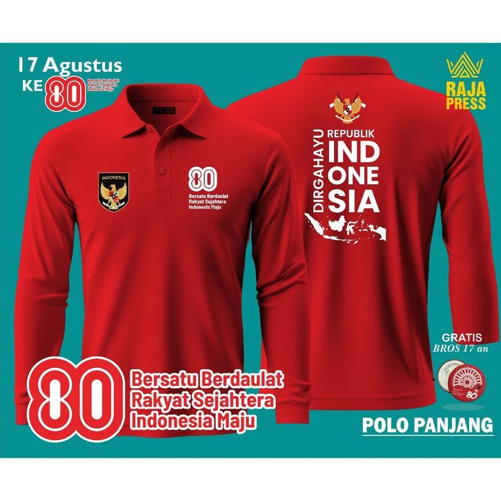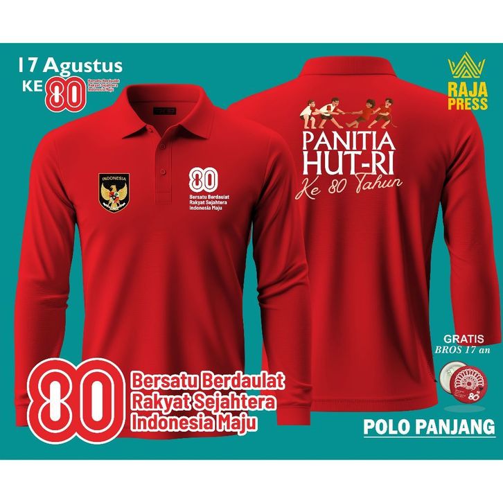 POLO 17 AGUSTUS HUT RI KE-80 2025 MERAH PUTIH LENGAN PANJANG DEWASA DAN ANAK POLO PANITIA AGUSTUSAN