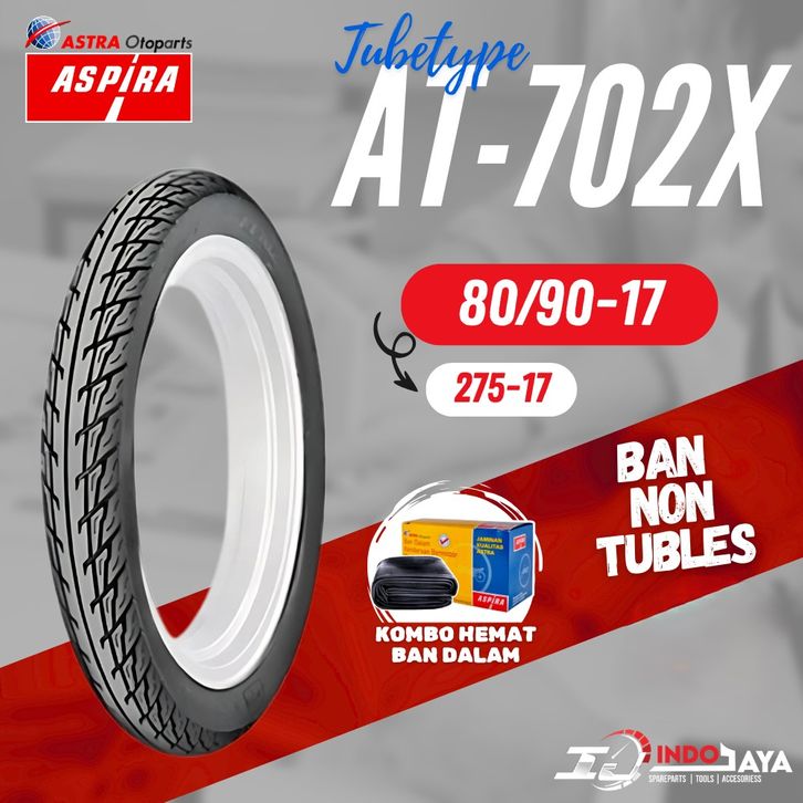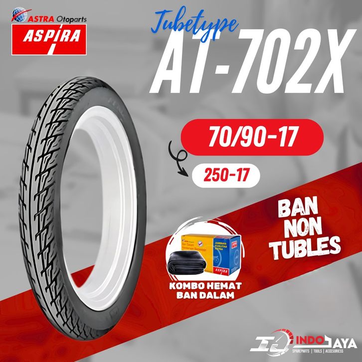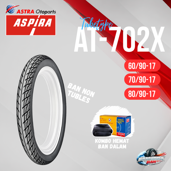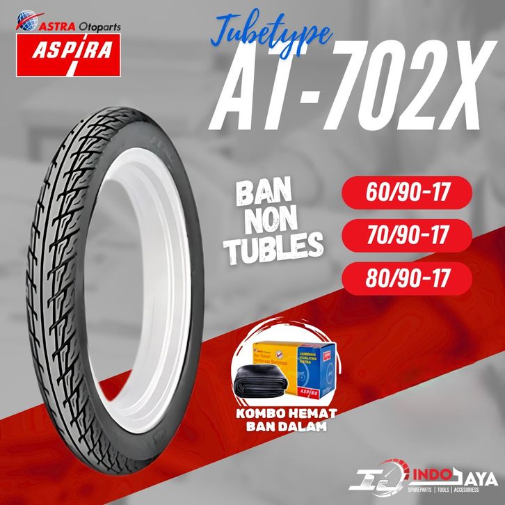 BAN ASPIRA TUBETYPE NON TUBLES AT702 X / AT-702X / BAN LUAR ASPIRA RING 17 (60/90-17 - 70/90-17 - 80/90-17 )