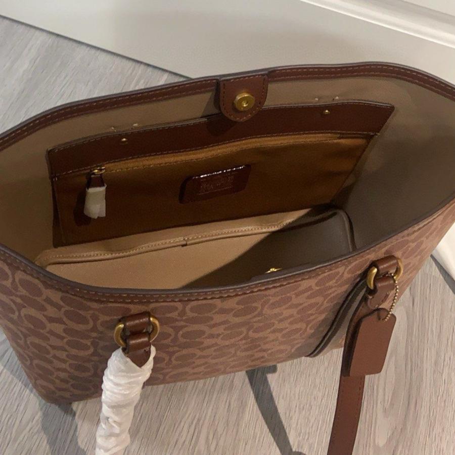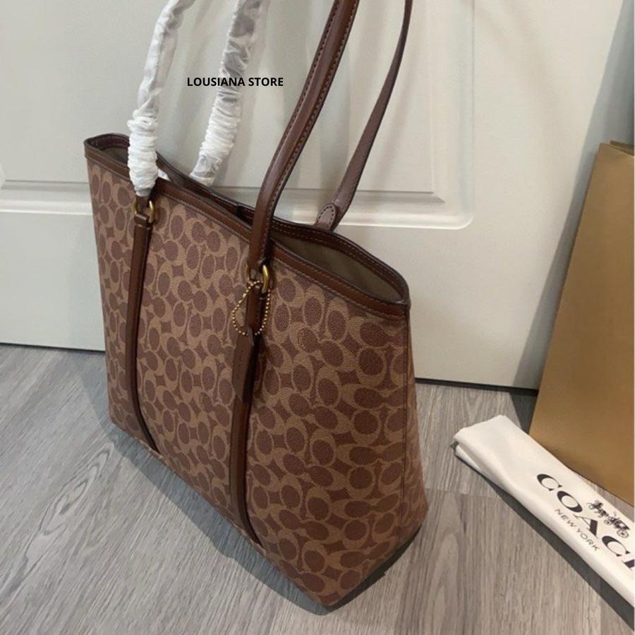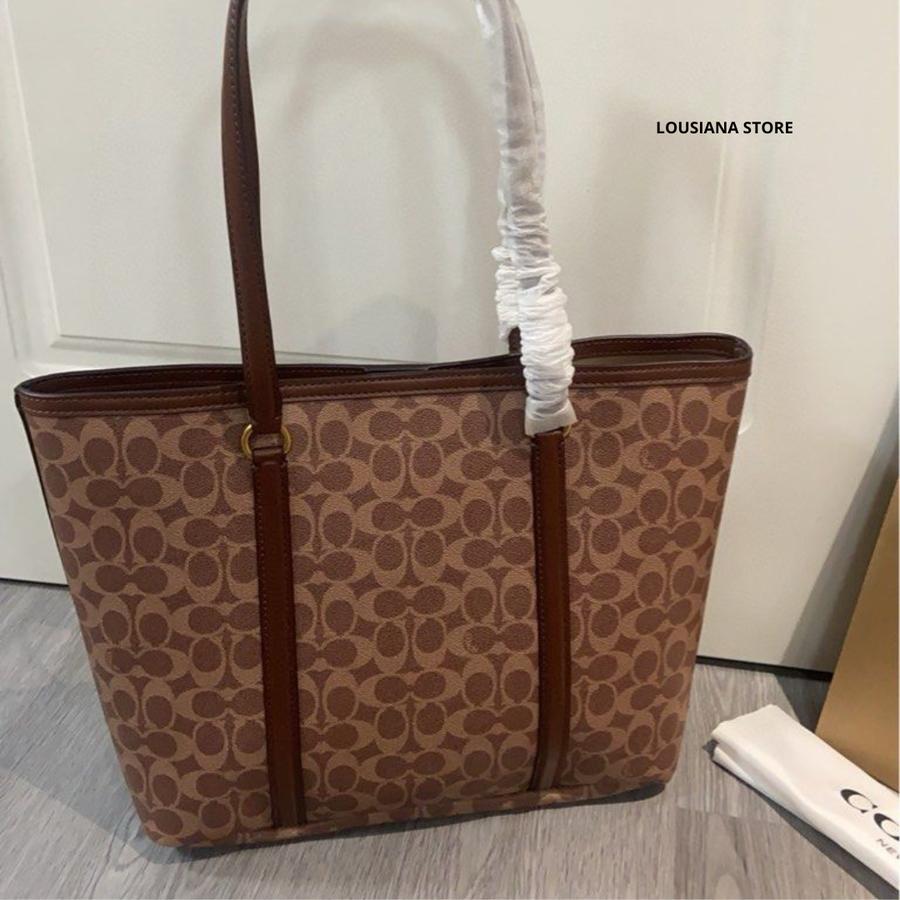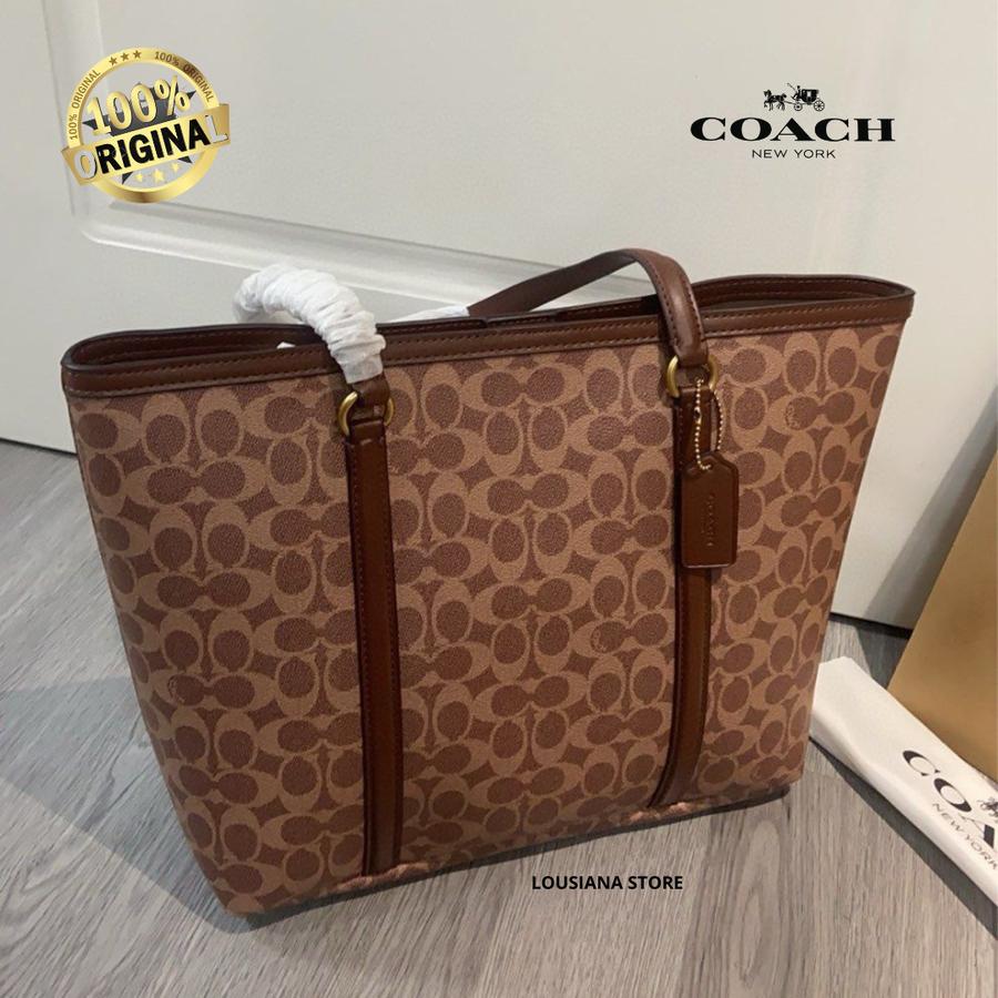 TAS WANITA COACH MONOGRAM TOTE BAG MUMMY BROWN KHAKI TAS BAHU CEWEK SIMPLE ELEGAN TERMURAH