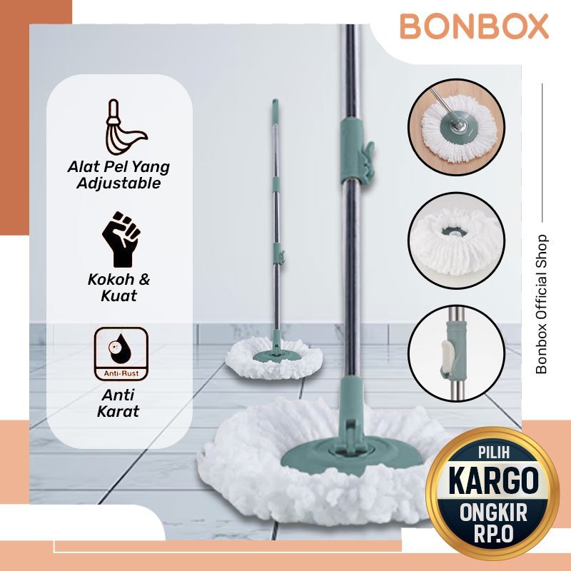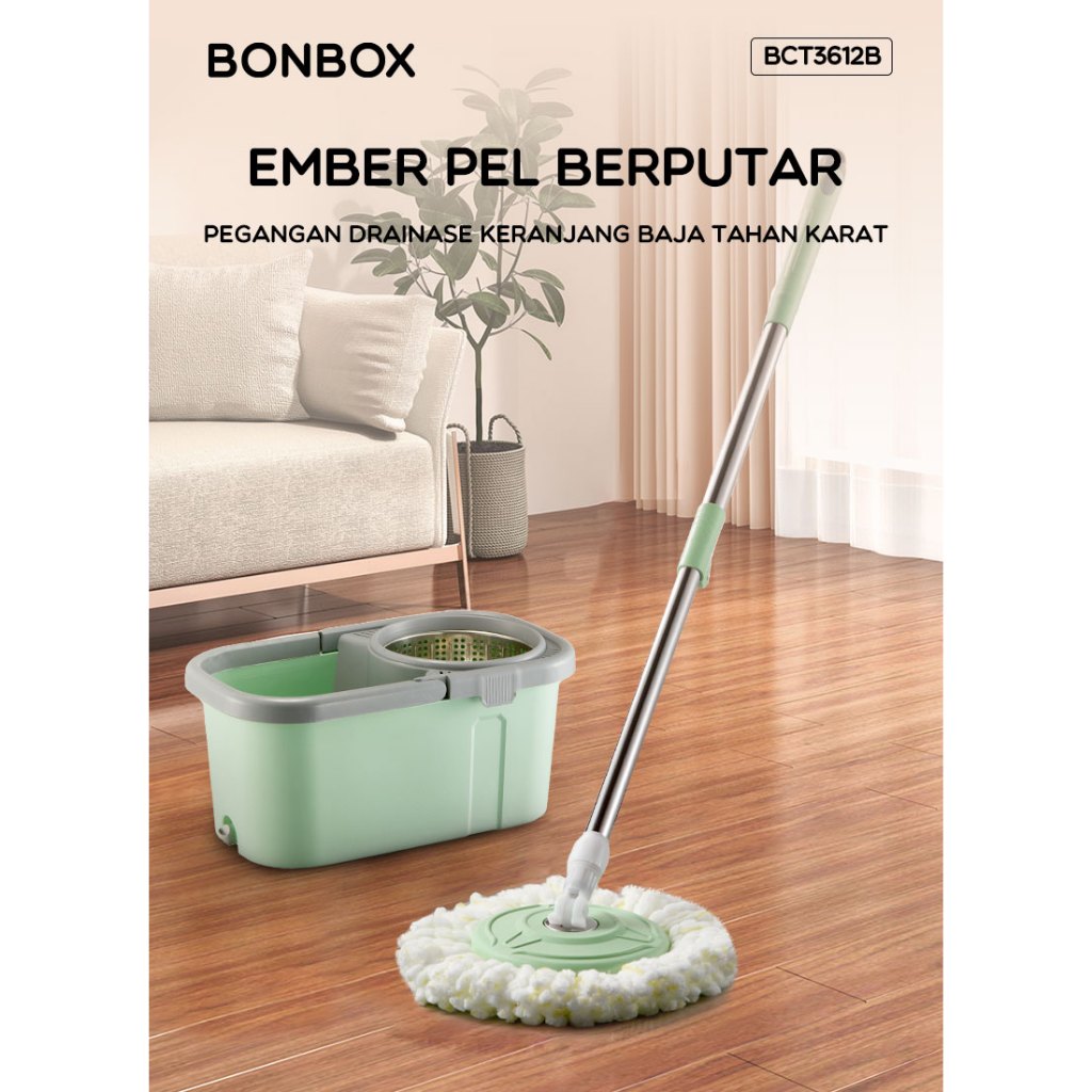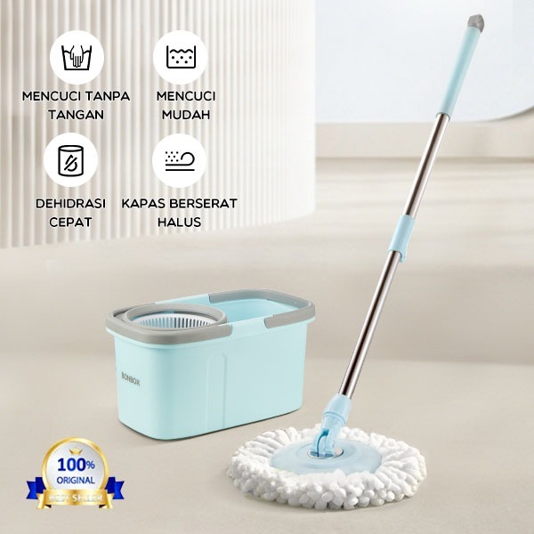 Bonbox Alat Pel Lantai Ember 2 in 1 DAPAT 2 KAIN PEL CADANGAN Kain Fiber Ember Spin Mop