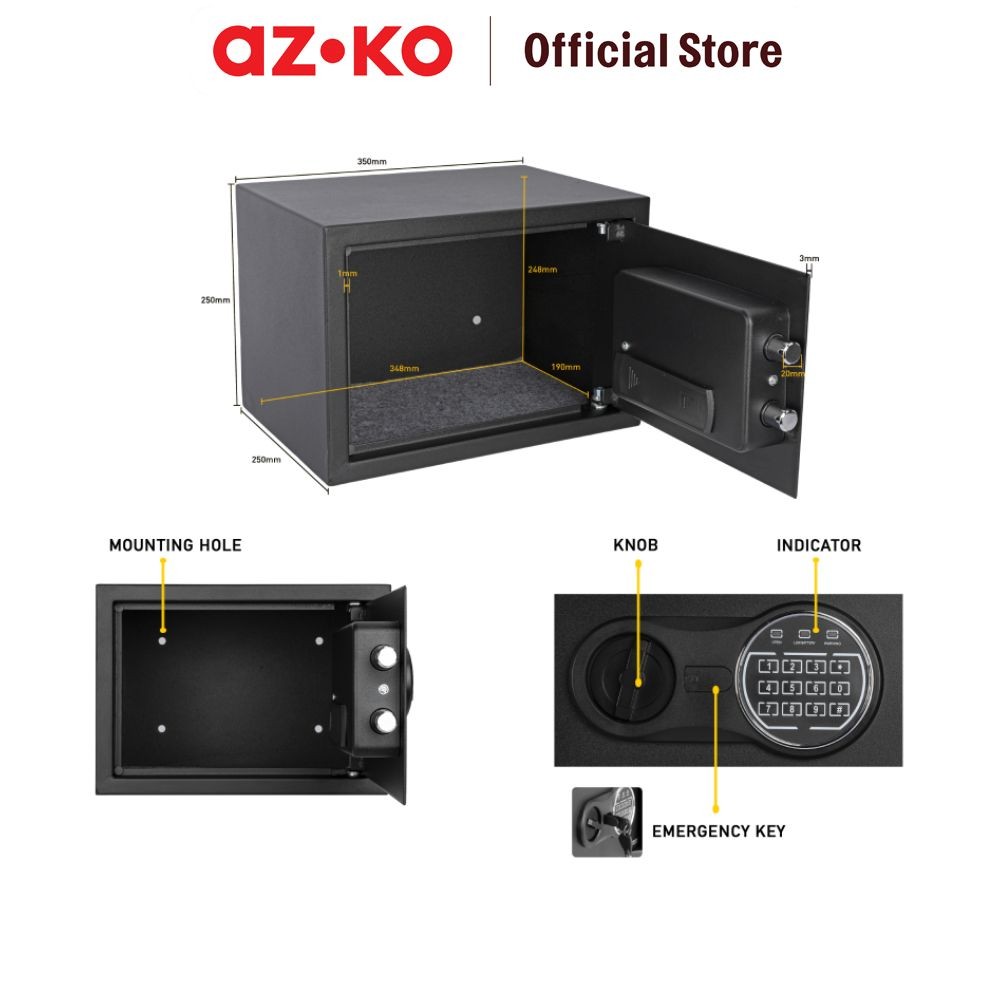 ZKO Krisbow 35X25X25 cm Brankas Besi 25Sce 1/3 - Hitam Brangkas Safety Box Tempat Barang Berharga Berangkas