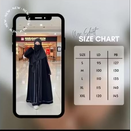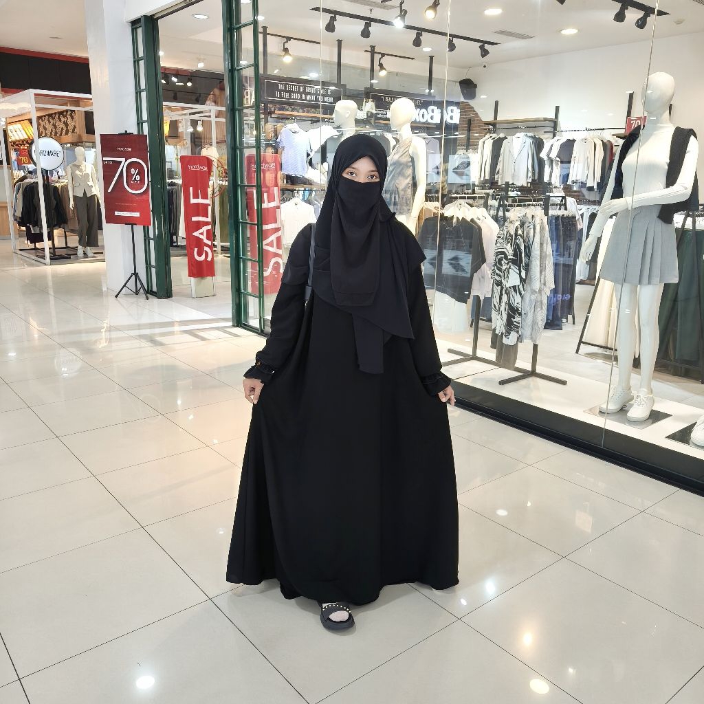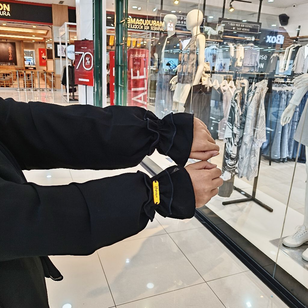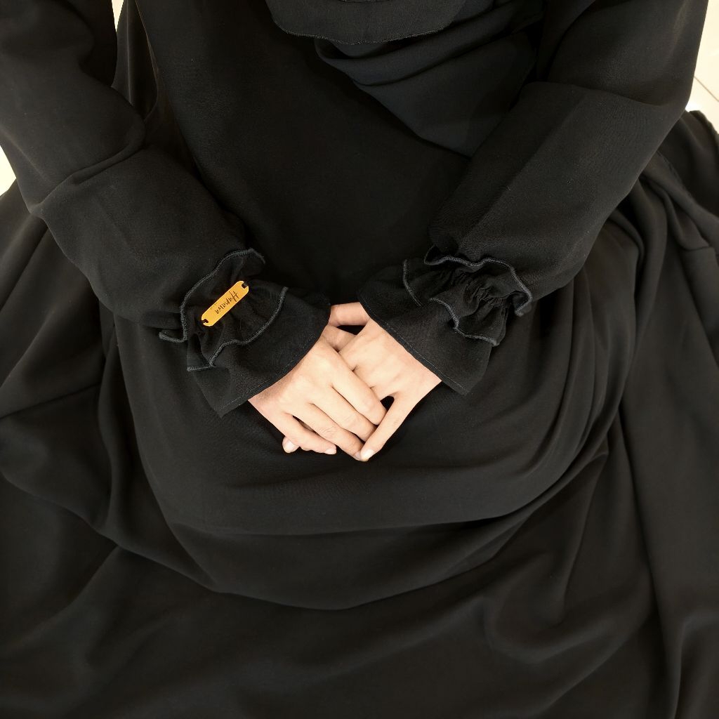 Abaya Luna Gamis Hitam Jetblack Muslimah Lengan Kerut
