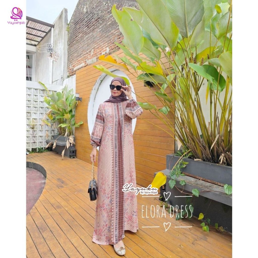 Elora Dress Gamis Panjang Rayon Terbaru Muslimah Model Lengan Balon Yayuku by Yayoe Hijab