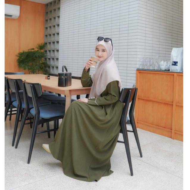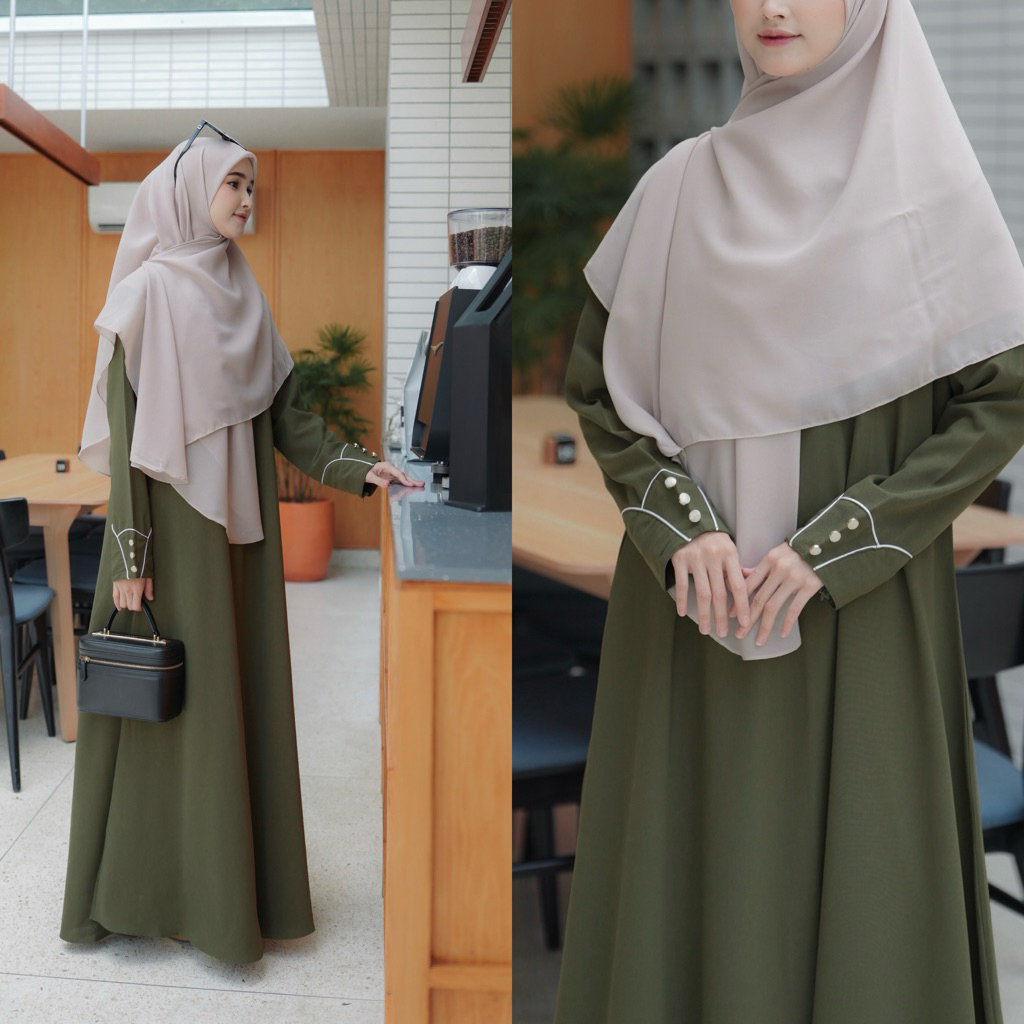 DEENA ABAYA by SABRINA - GAMIS WANITA MUSLIM BAHAN ANTI UV DRESS POLOS KANCING PERGELANGAN TANGAN