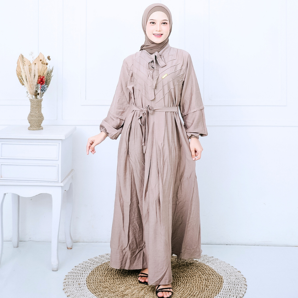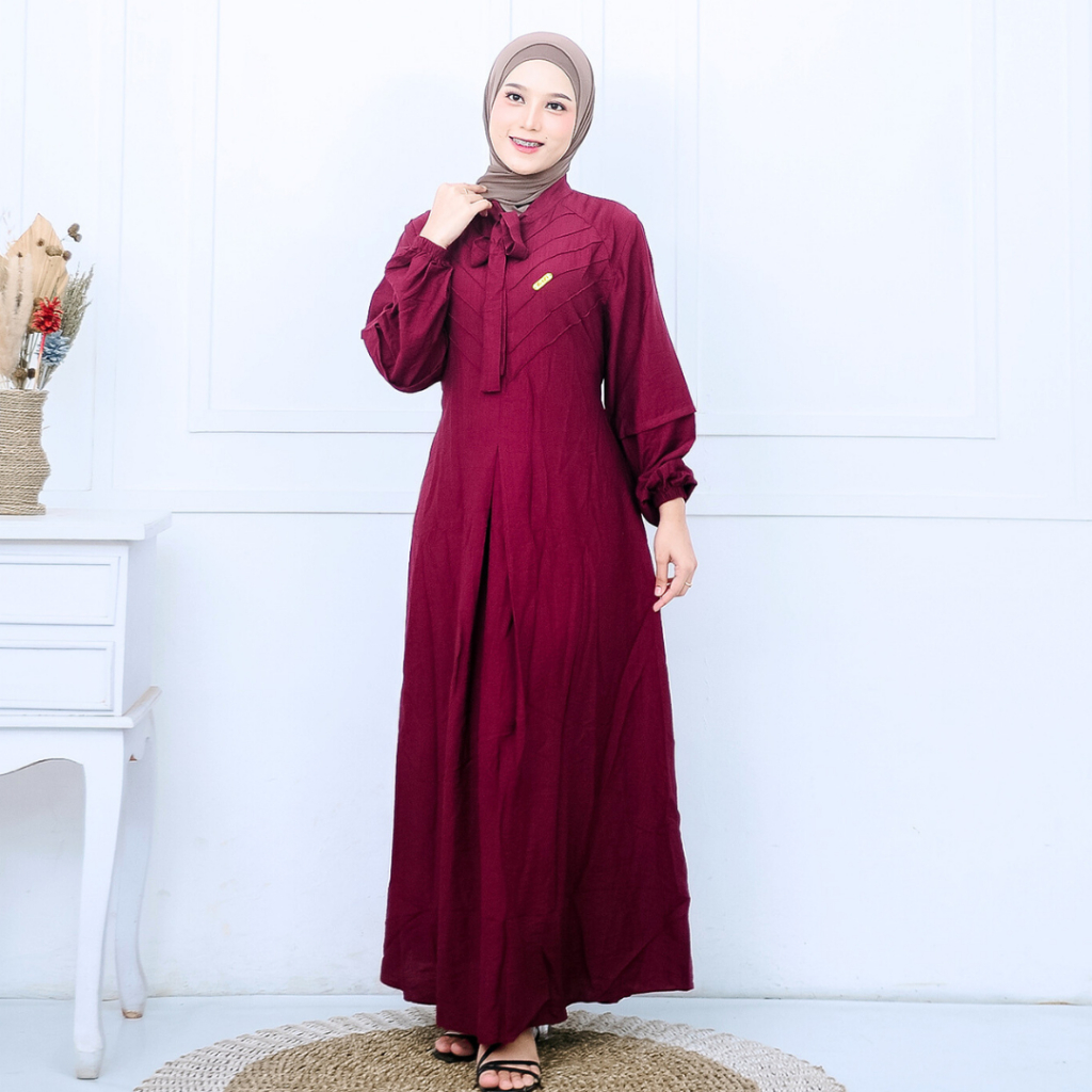 Gamis polos Wanita Lengan Panjang look simpel – Dress wudhu dan busui friendly Kekinian dan Stylish