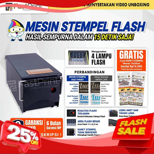 [Mall] Fast Print Mesin Stempel Flash Kilat Premium 4 Lampu Full Plat Besi