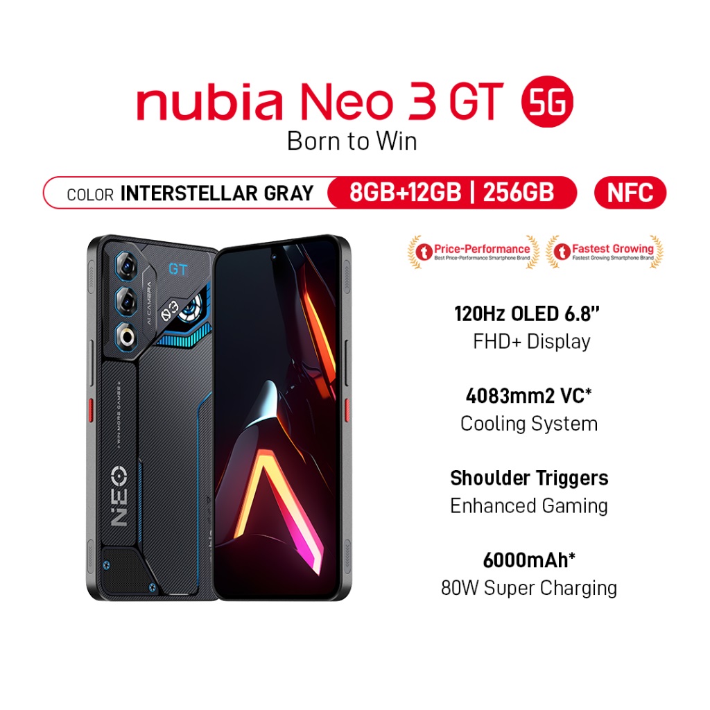 HP Gaming nubia Neo 3 GT 5G RAM 20 GB (8 +12 GB) + ROM 256 GB 6000mAH Super Fast Charging 80W Garansi Resmi