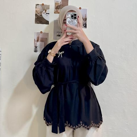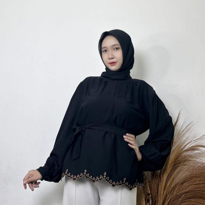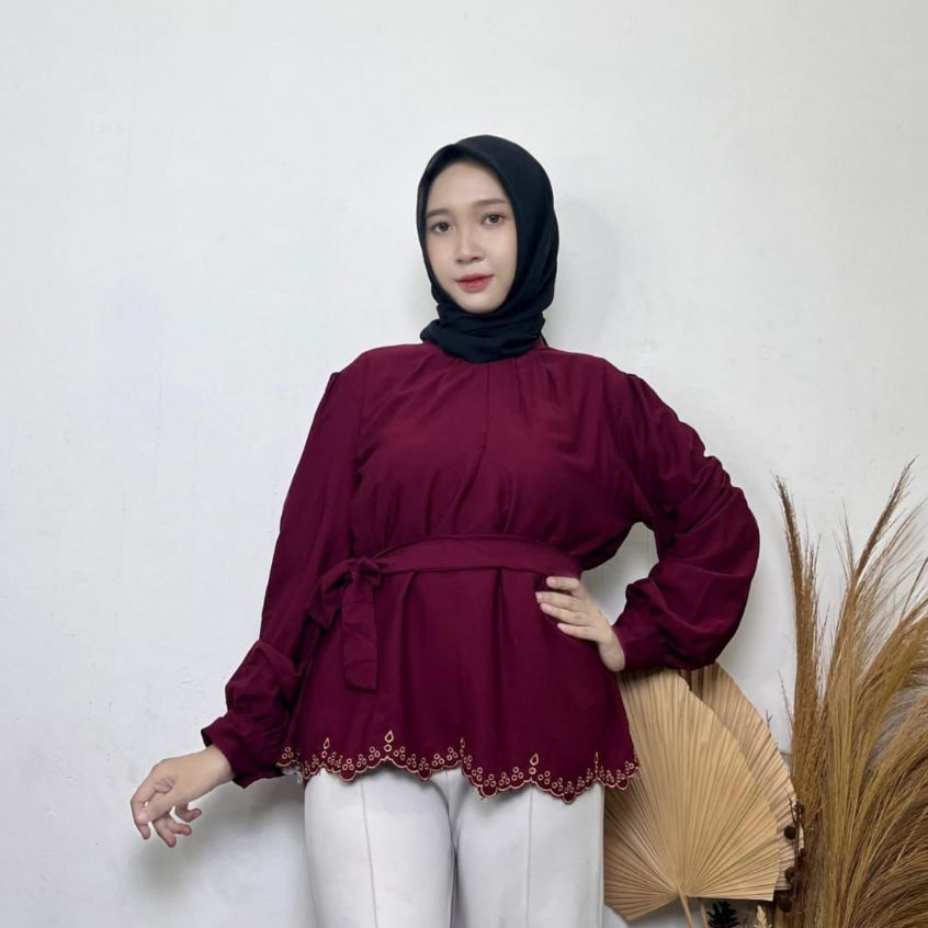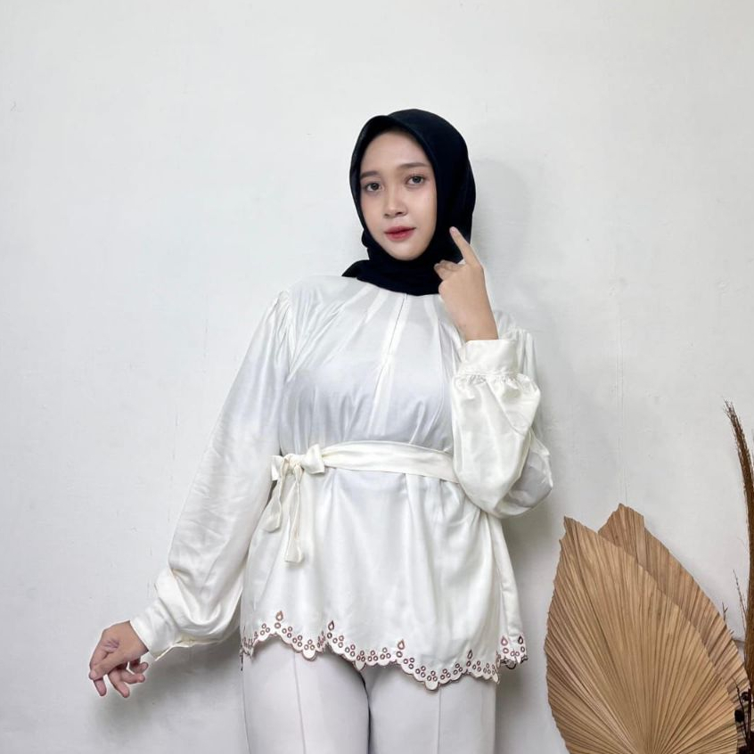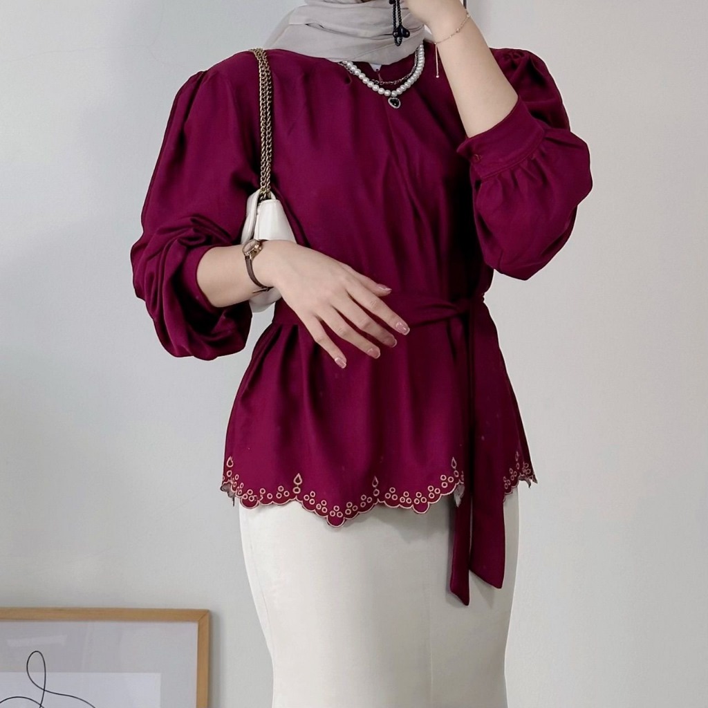 Blouse Puffy Lengan Balon Kerah Shanghai Elegant Free Belt Atasan Stylish Aireen