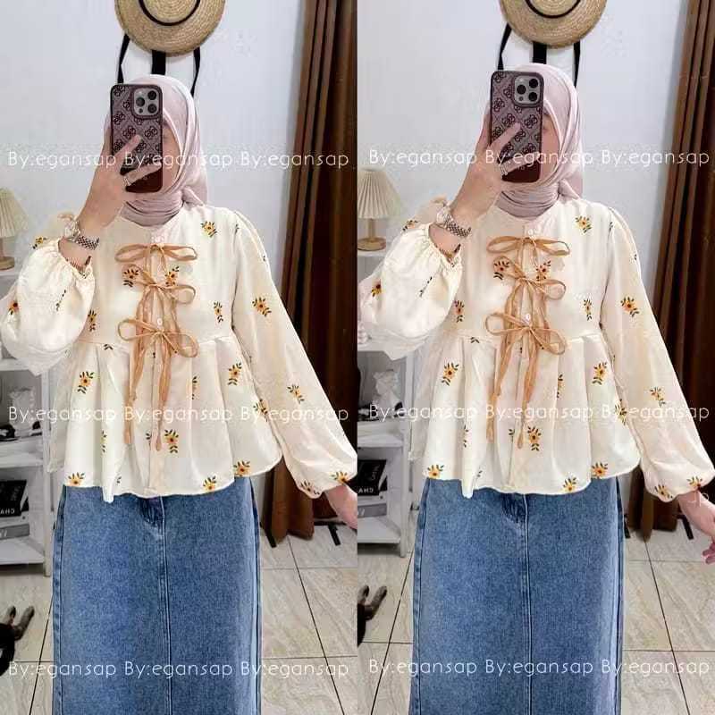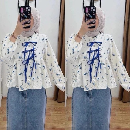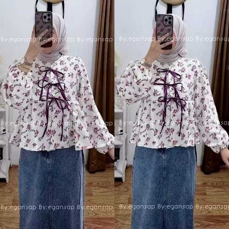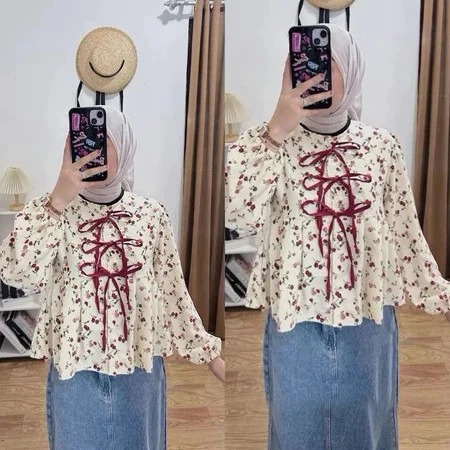 Atasan BLOUSE GHIANA Katun Motif Blouse Coquette Ribbon