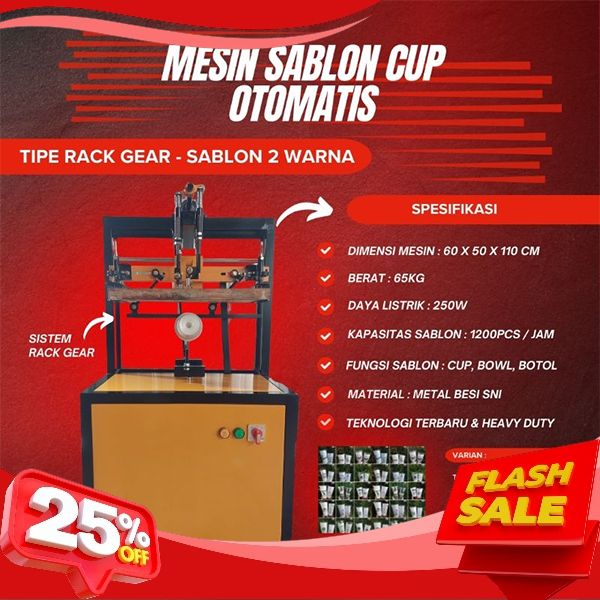 Mesin Sablon Gelas Cup Otomatis 2 Warna +Rack Gear