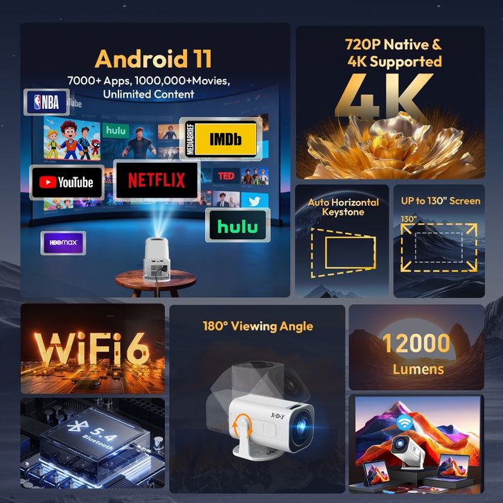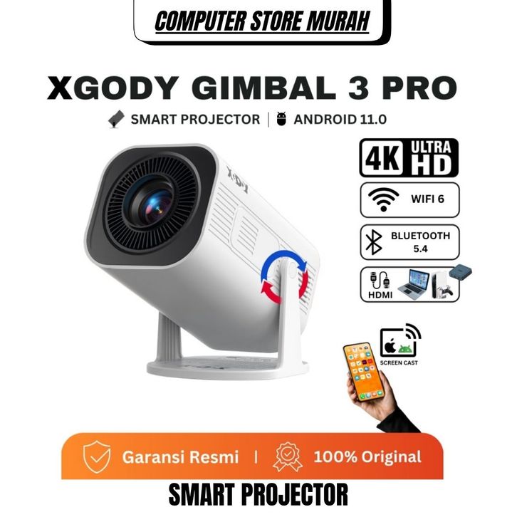 XGODY Gimbal 3 Pro Smart Proyektor LCD Android 11 720P Auto Keystone Netflix YouTube 220 ANSI Best Seller Termurah