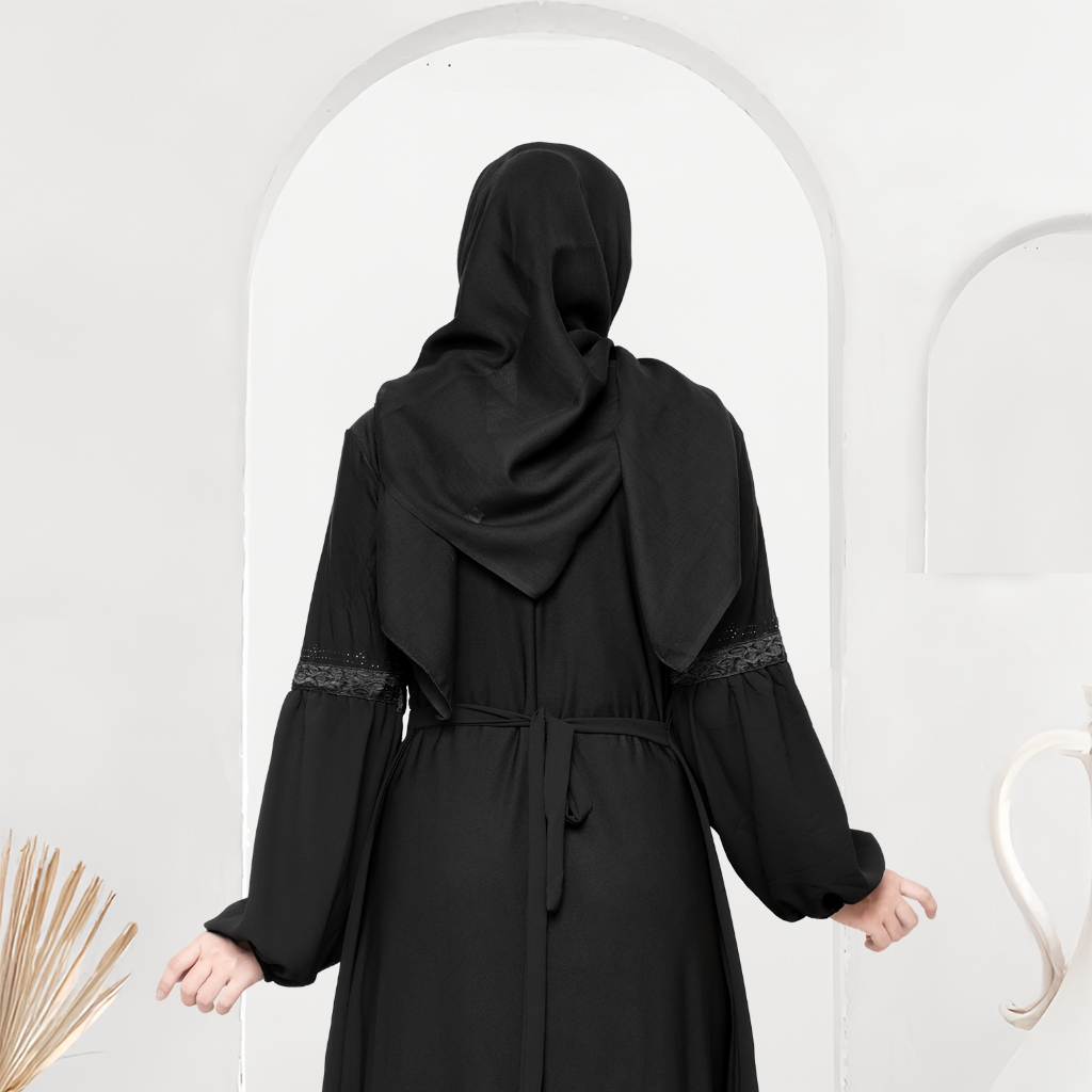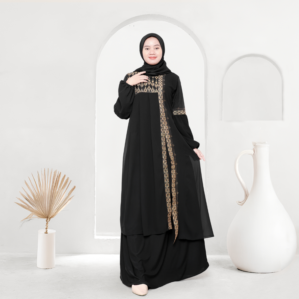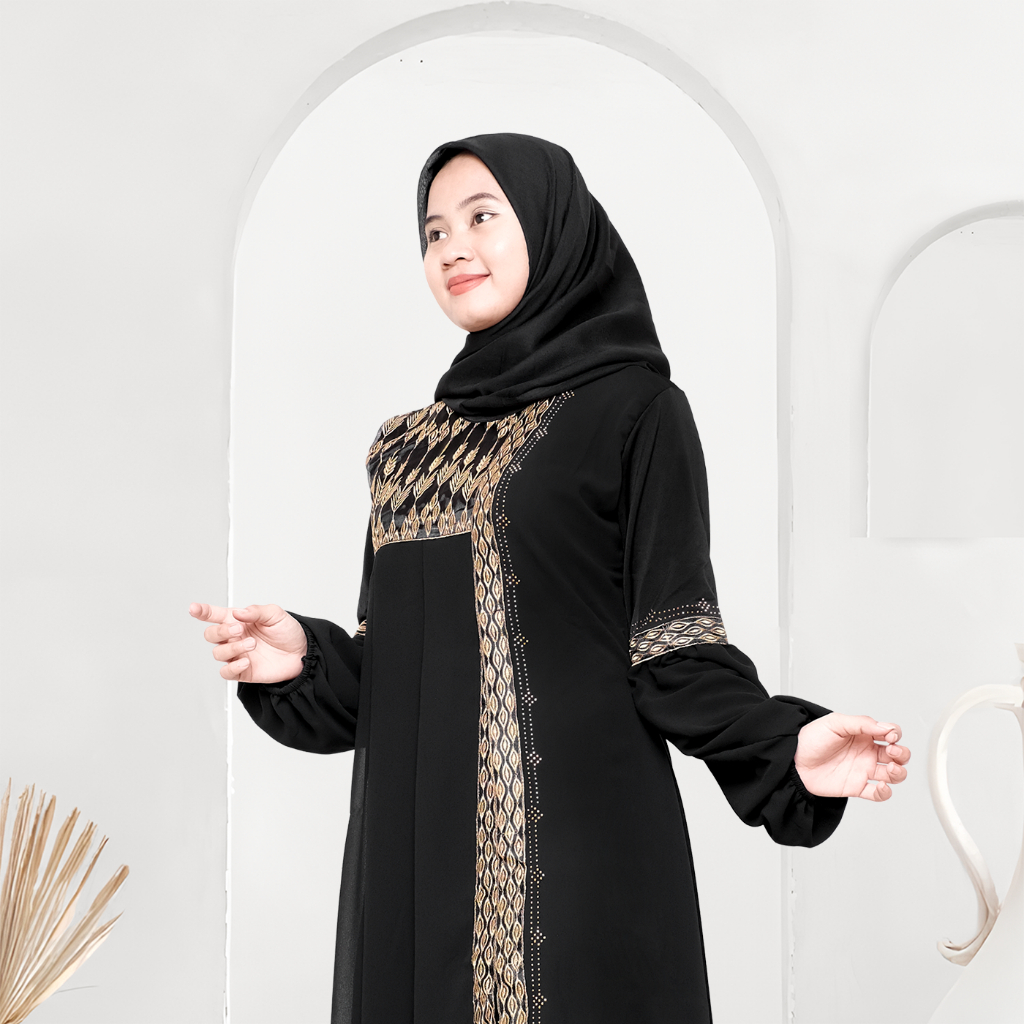 Mesaya - Abaya Hitam Turkey Gamis Syari Muslim Jersey Mix Cerutty Bordir Payet Dress Arab Saudi 484