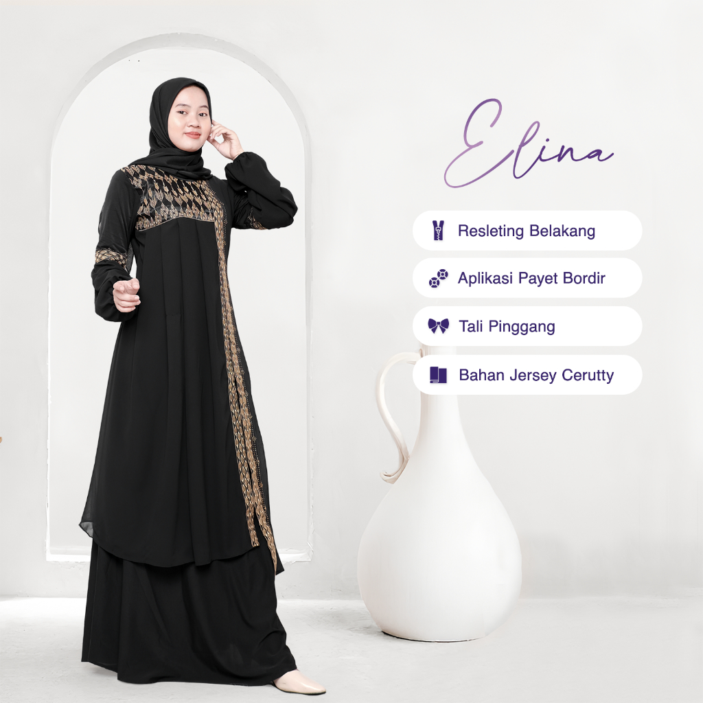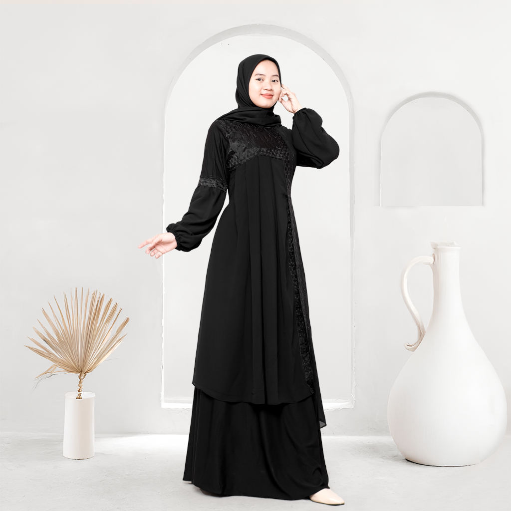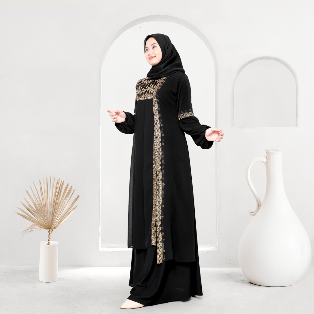 Mesaya - Abaya Hitam Turkey Gamis Syari Muslim Jersey Mix Cerutty Bordir Payet Dress Arab Saudi 484