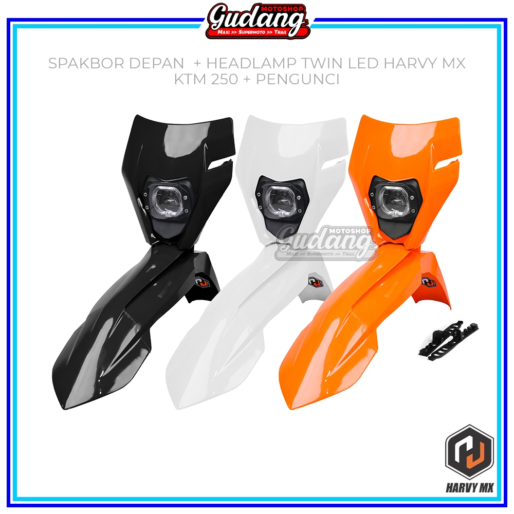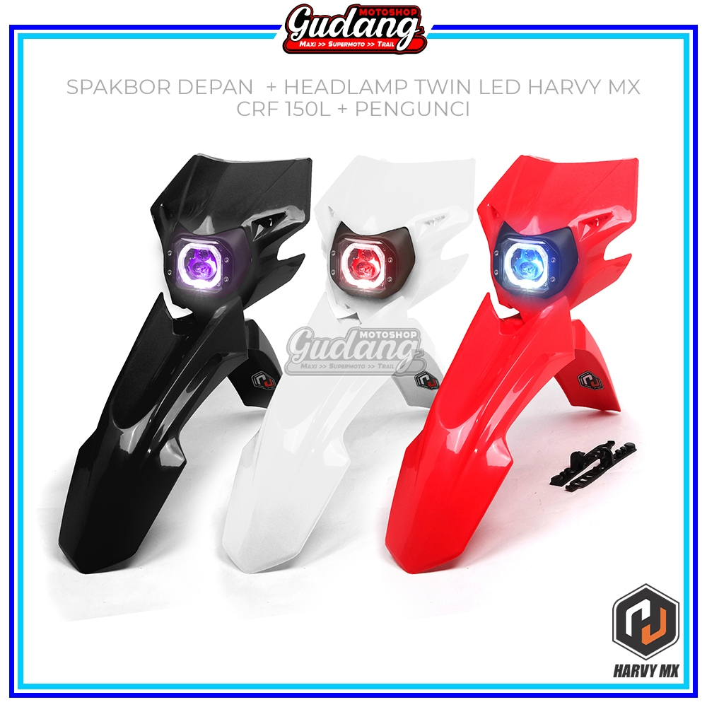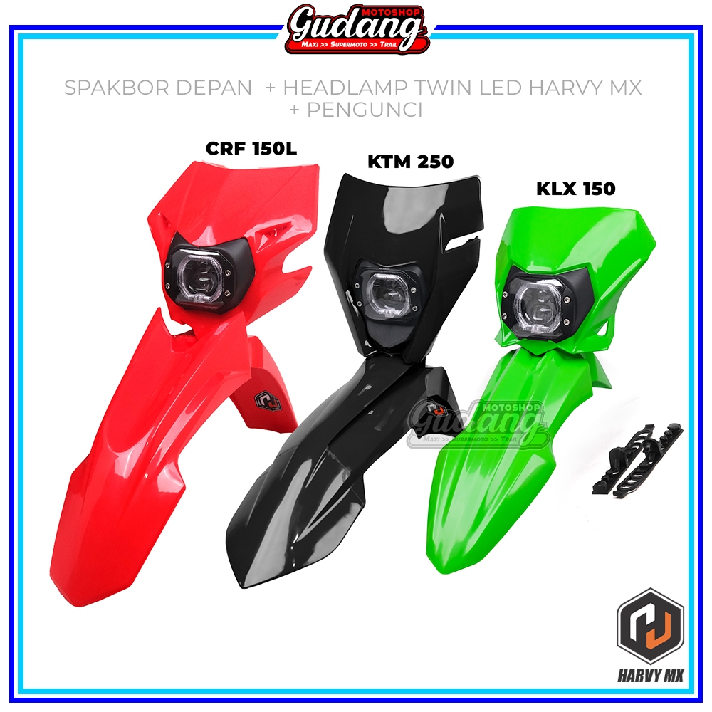 Spakbor Slebor Depan Plus Headlamp Batok Lampu Depan Twin Led Plus Pengunci Hrv Supermoto Klx 150 Crf 150l Ktm 250 2017