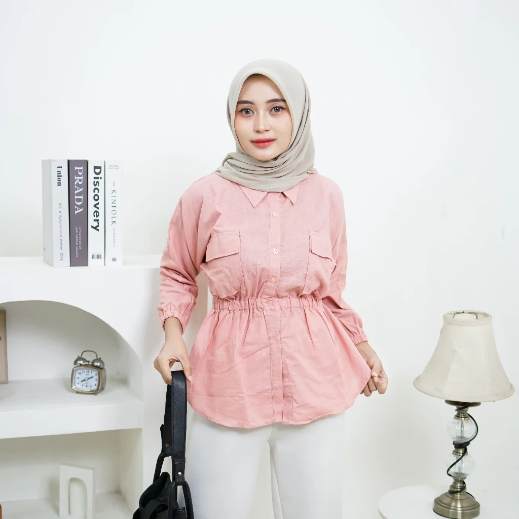 Beena Linen Shirt- Beena Linen Shirt Model Karet-Atasan Wanita Blouse