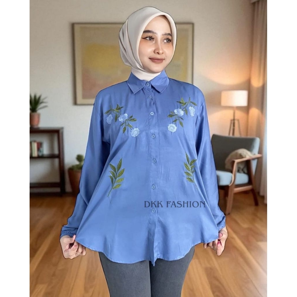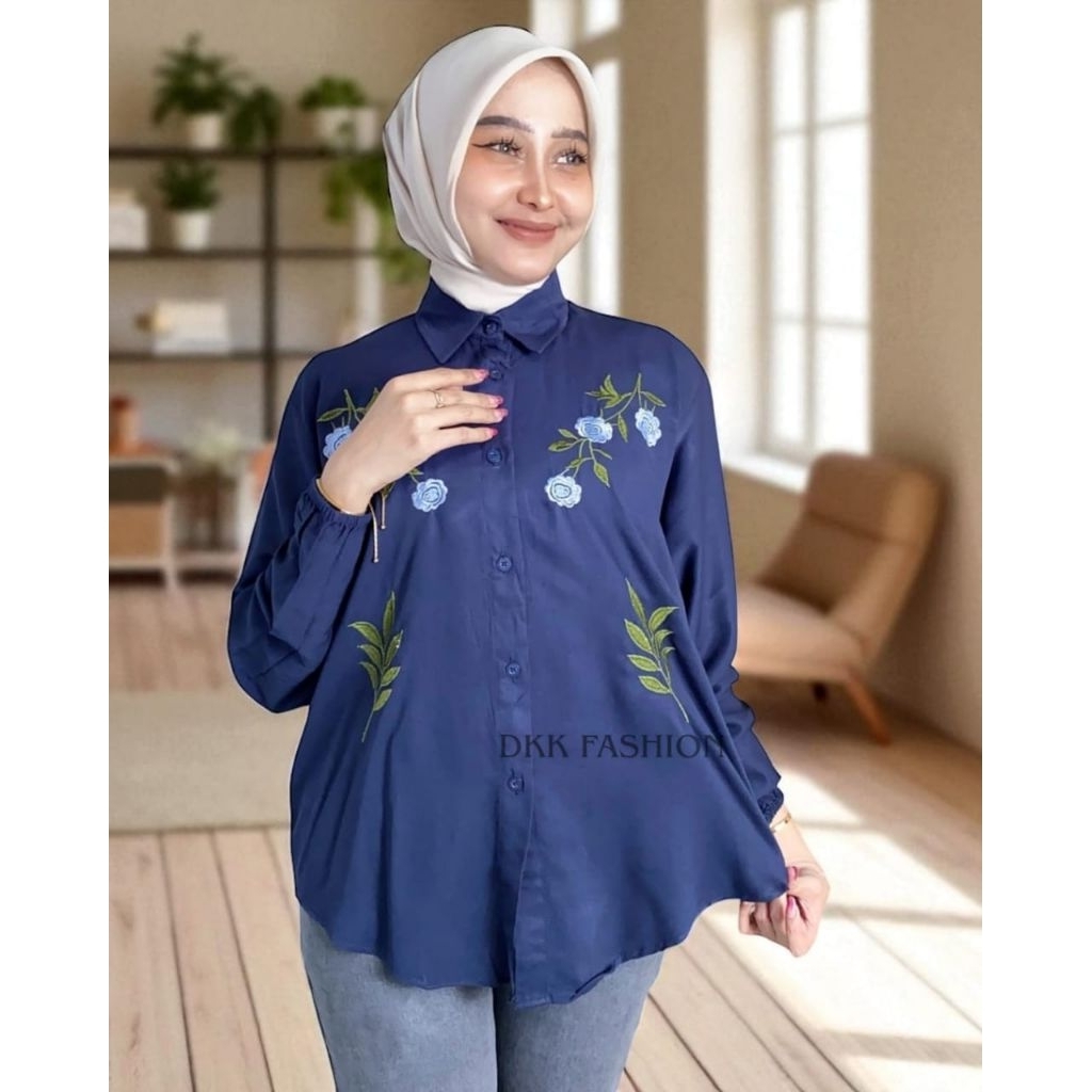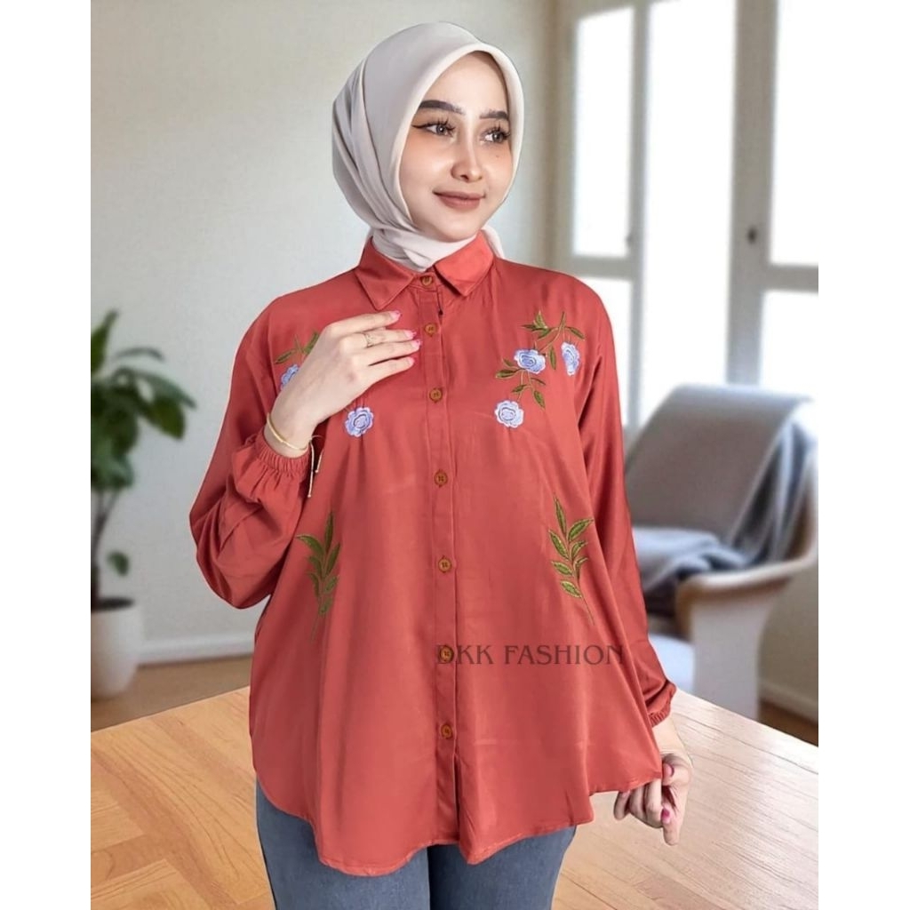 Kemeja Blouse Rosa Rayon Twill Bordir Ld 110-120 Terlaris