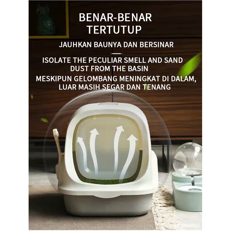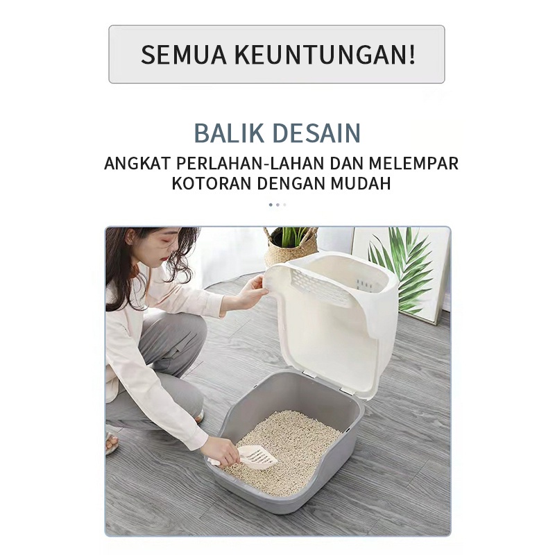 Cat Litter Box Tempat Pasir Kucing Extra Jumbo Pintu Otomatis Terbuka Set Bak Pasir