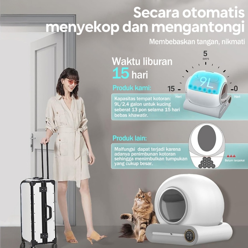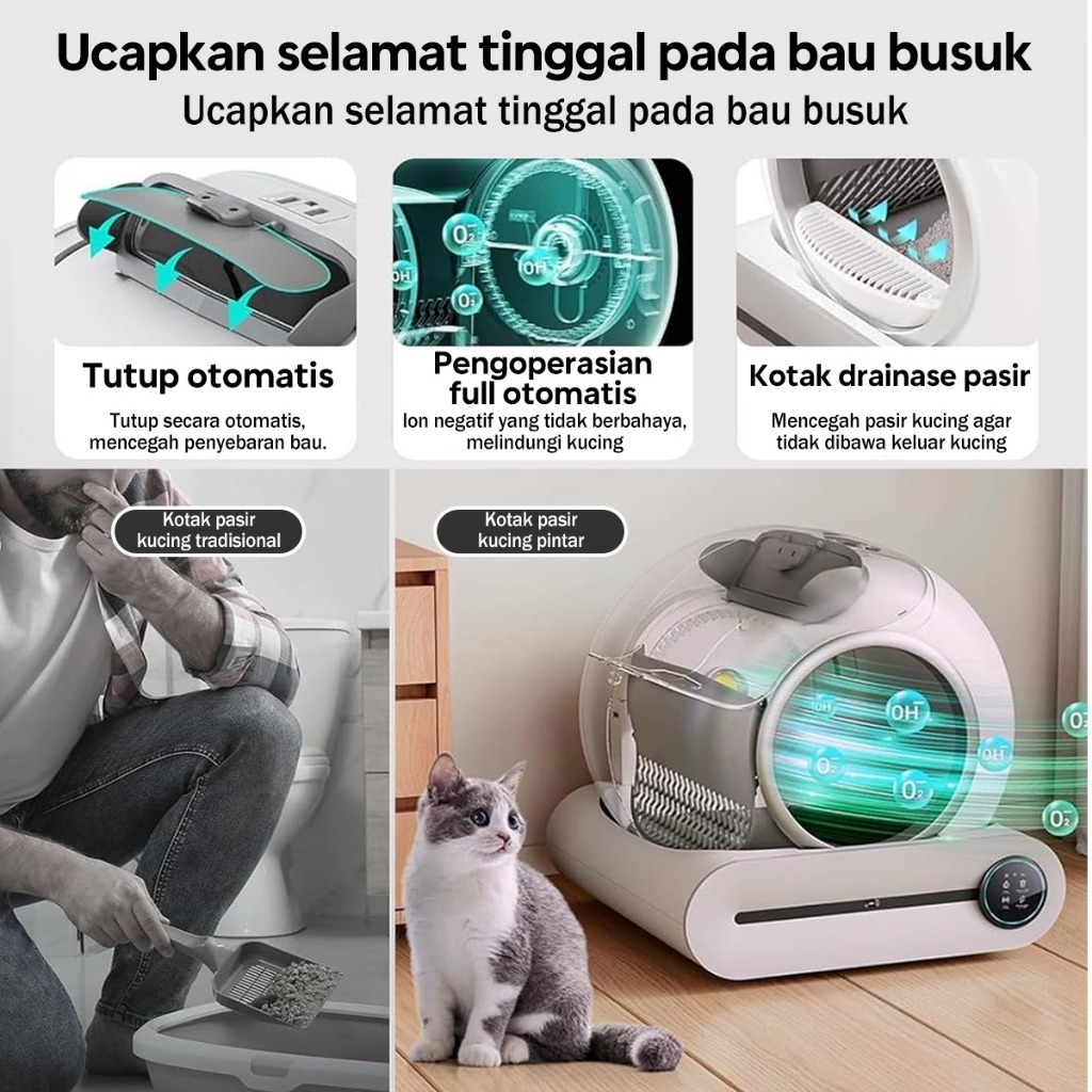 ⚡Bantalan Kontrol Pasir Gratis⚡Automatic Litter Box WiFi 2.4G Kucing Litter Box Automatic Self Cleaning App Control LED
