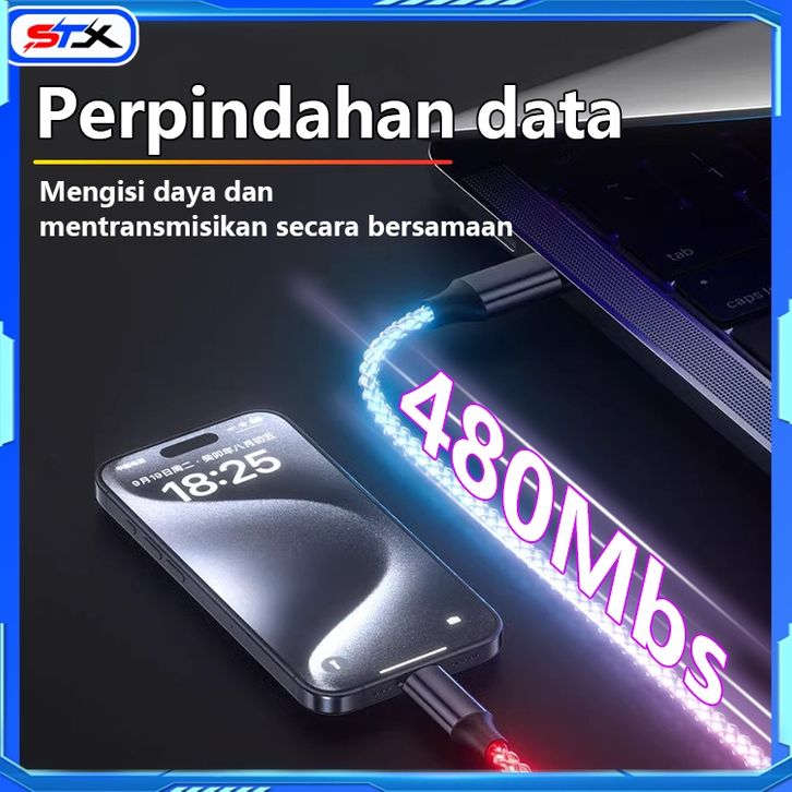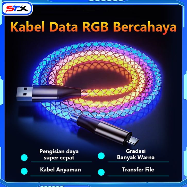 Kabel Data STX Kabel Data RGB LED Type C Micro Usb Lightning Iphone Fast Charging Kabel Data Benang Rajutan loggam Camp