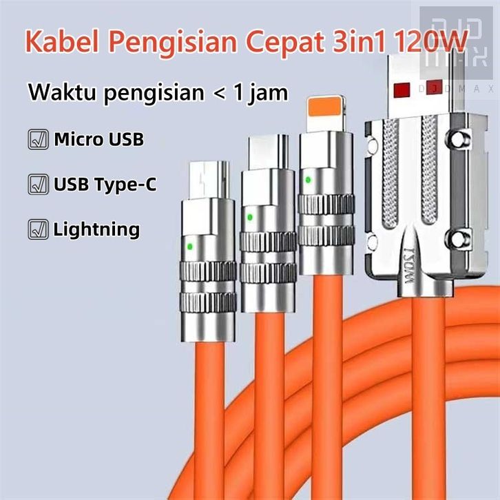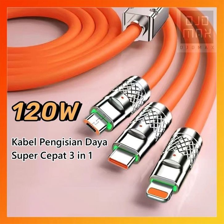 Kabel Data DJDMax Kabel Data 3 in 1 120W Fast Charging Micro USB Type C iPhone Kabel 3 in 1 IOS USB Android Cable Data
