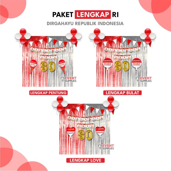 Paket Super Murah Dekorasi HUT RI Lengkap[ Bebas Pilih Angka ]Hiasan 17Agustus Dirgahayu Kemerdekaan