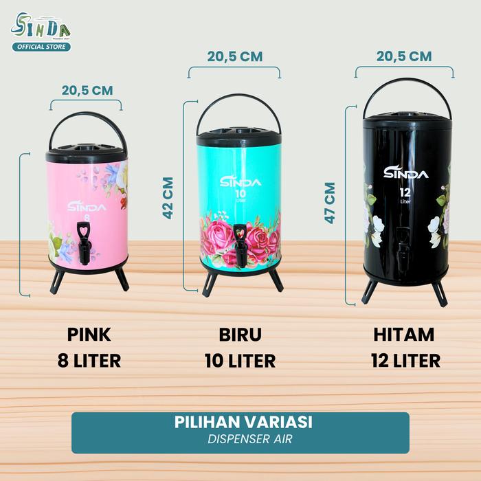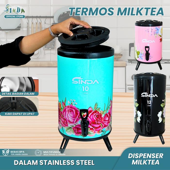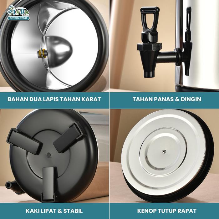 SINDA Termos Minuman Serbaguna - Dispenser Stainless Steel 8L 10L 12L untuk Teh Susu Air Panas dan Dingin. - 8L Hitam