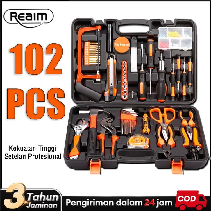Reaim Hand Toolset 102PCS Tool Kit Alat Rumah Tangga Kotak peralatan multi-fungsi Set Alat Perbaikan Rumah DIY