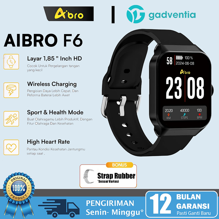 AIBRO F6 Smartwatch 1.85'' Inch Bluetooth Call Jam Tangan Pintar Sport Fitness Tracker Android iOS Garansi Resmi 1 tahun