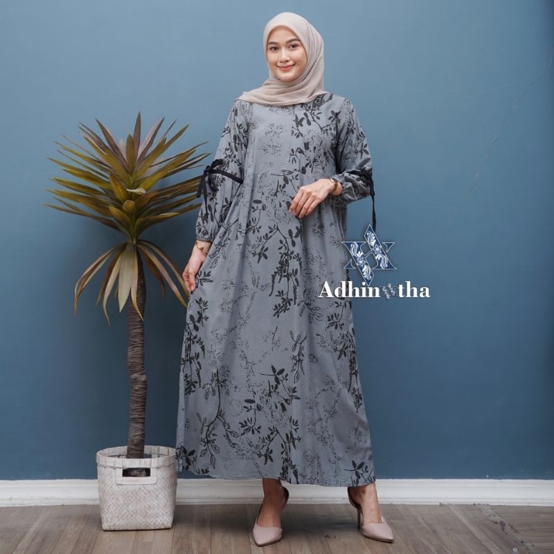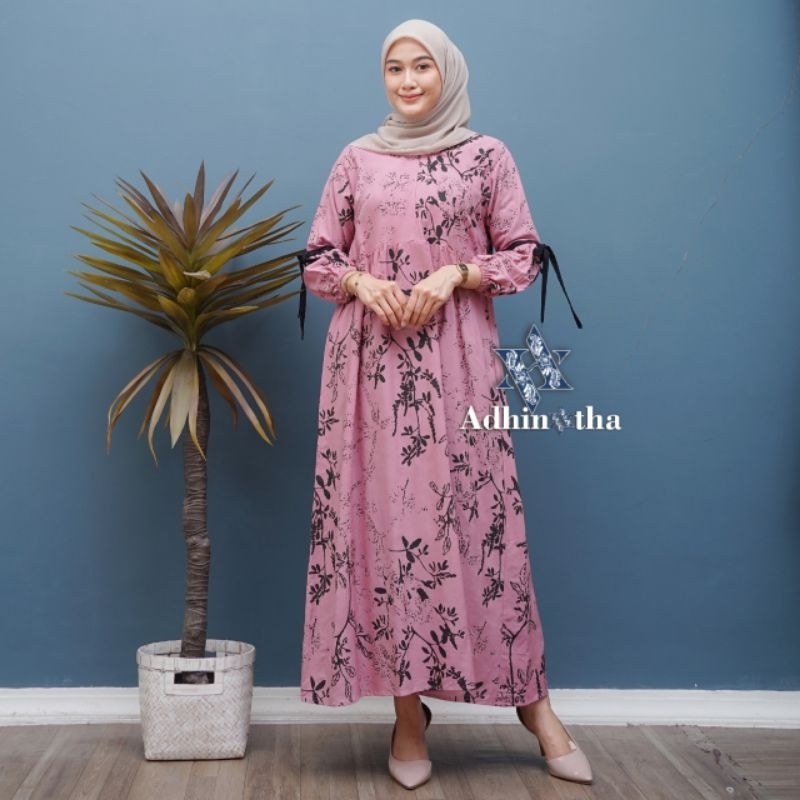 GAMIS NIRMALA - RAYON PREMIUM - DRESS BATIK KOMBINASI TALI PITA - BUSUI LENGAN PANJANG - JUMBO LD 130 - HOMEDRESS TERBAR