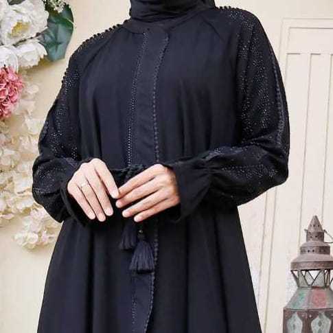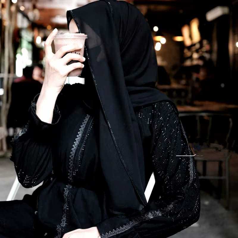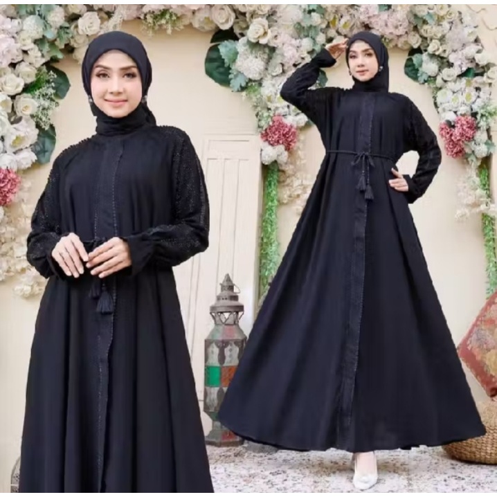 02~ Abaya Hitam Turkey tasya Gamis Syari Muslimah Jetblack Hitam Kombinasi Mata Mata Dan Renda Abaya Clok Simple Busui R
