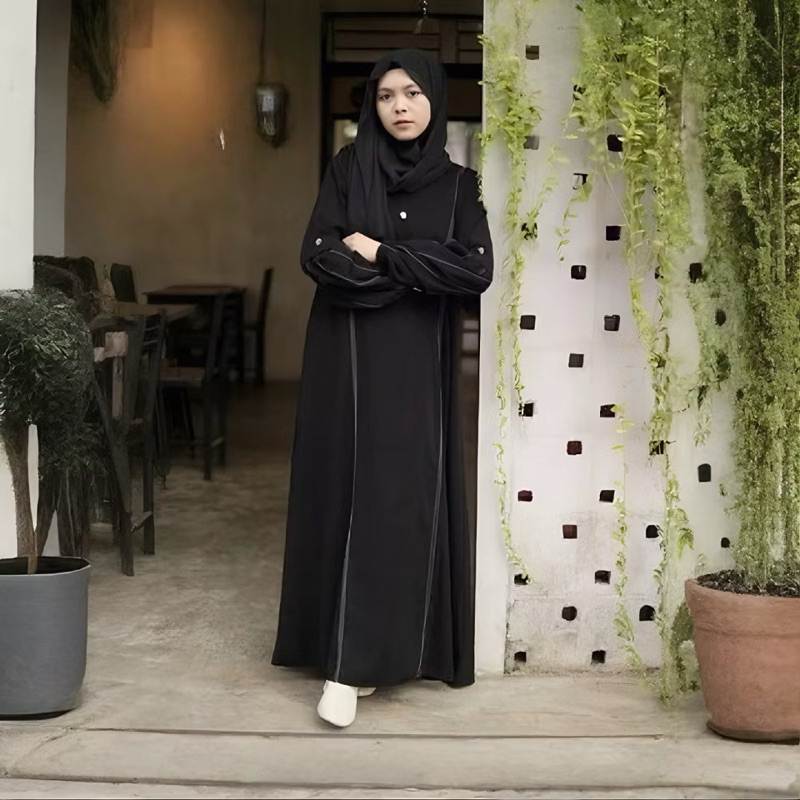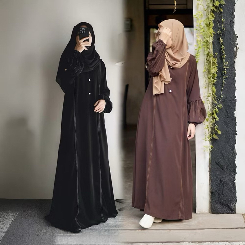 Gamis Safiya Abaya Turkey Hitam Syari Muslimah Bahan Jet Black Premium - Abaya Wanita