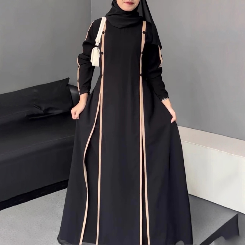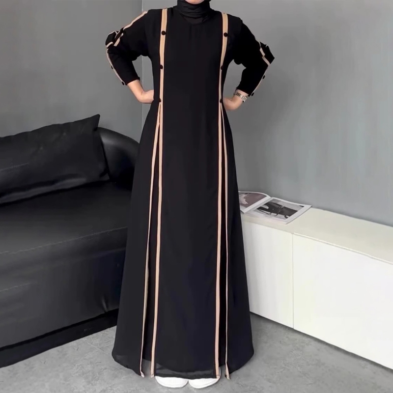 GDTIMA Gamis Hitam Gamis Wanita Muslim Abaya New Collection Dress Rania Lengan Panjang