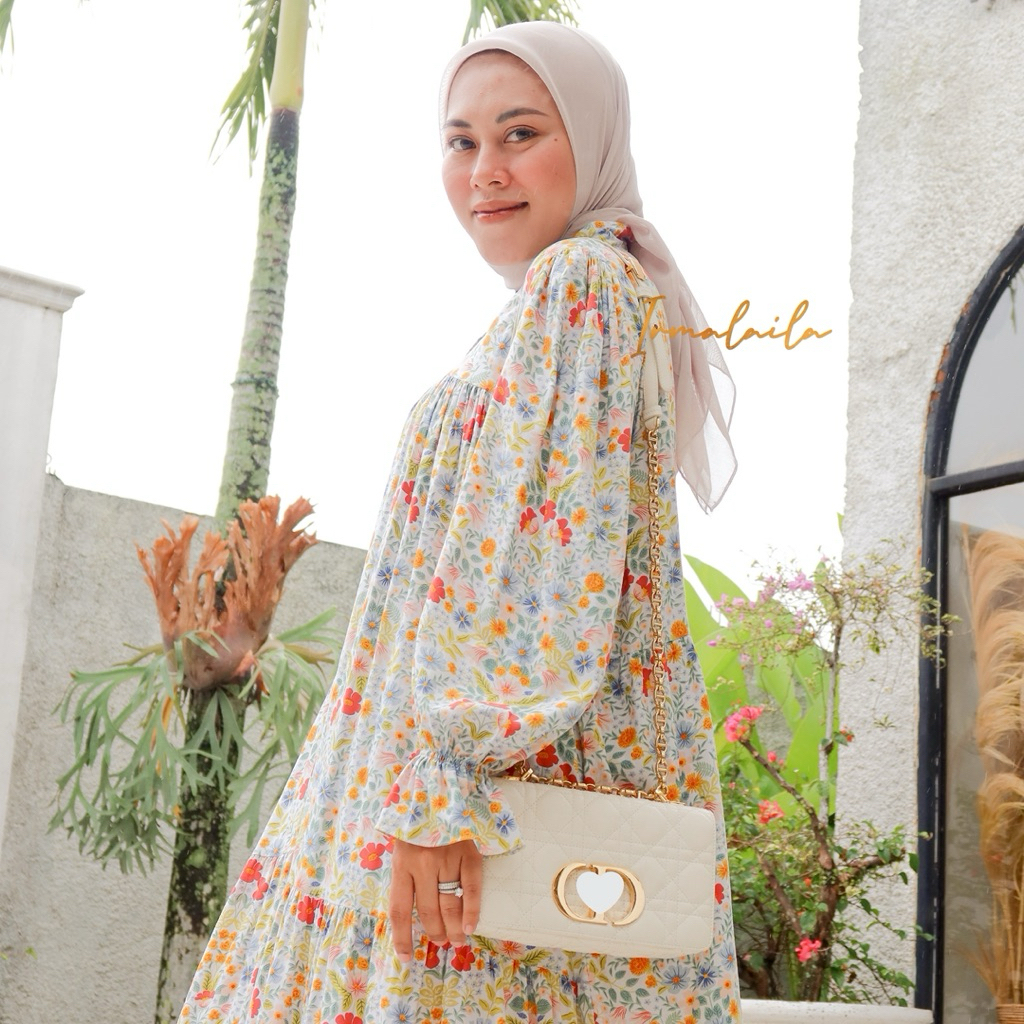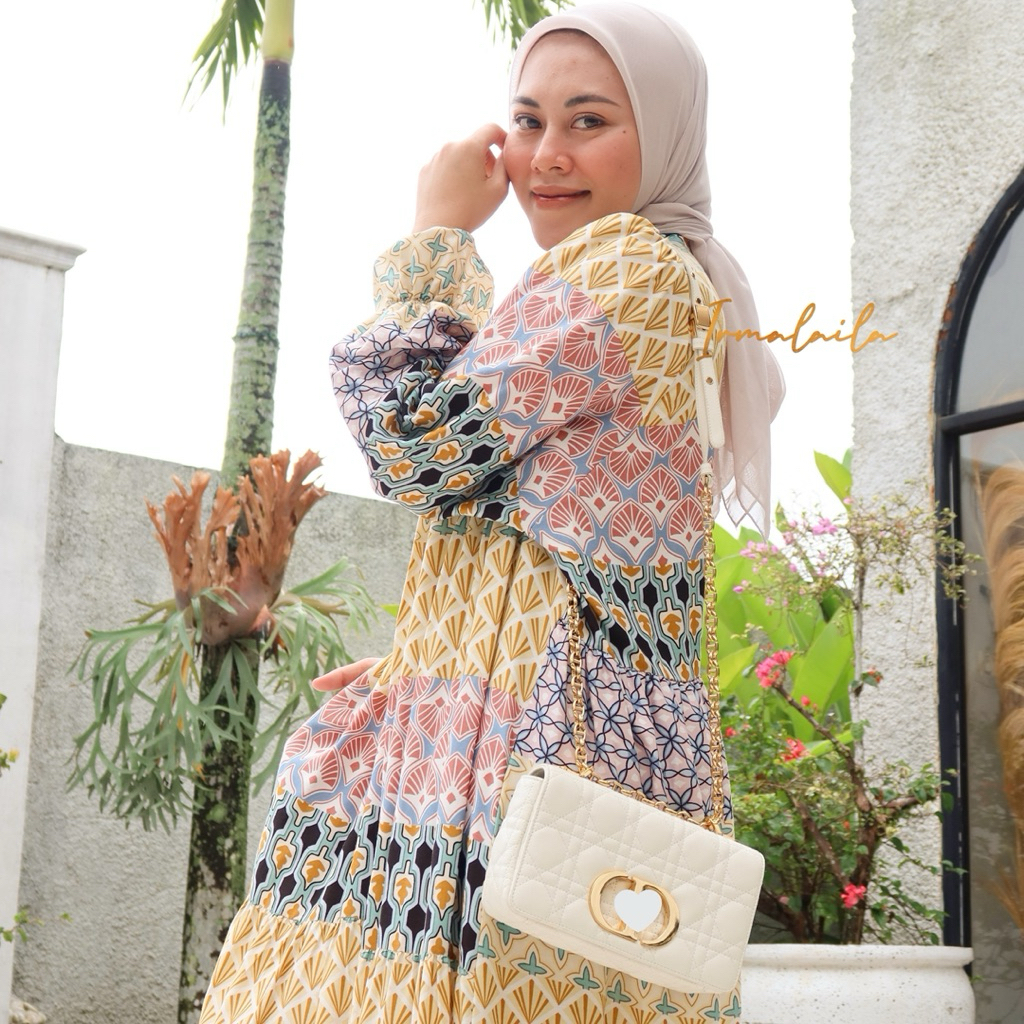 Irmalaila - Dewina Dress Gamis Panjang Motif Model Lengan Lonceng Balon Busui Bumil Friendy