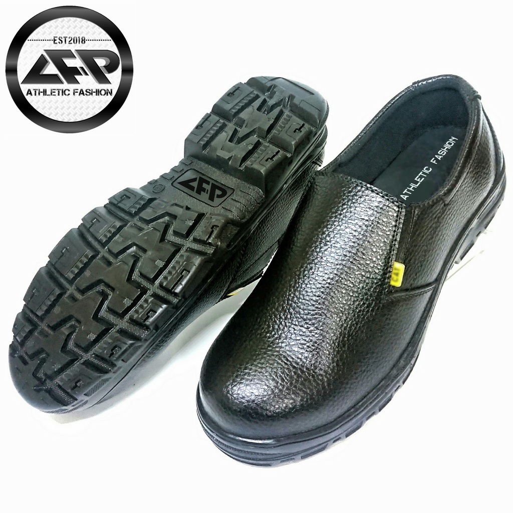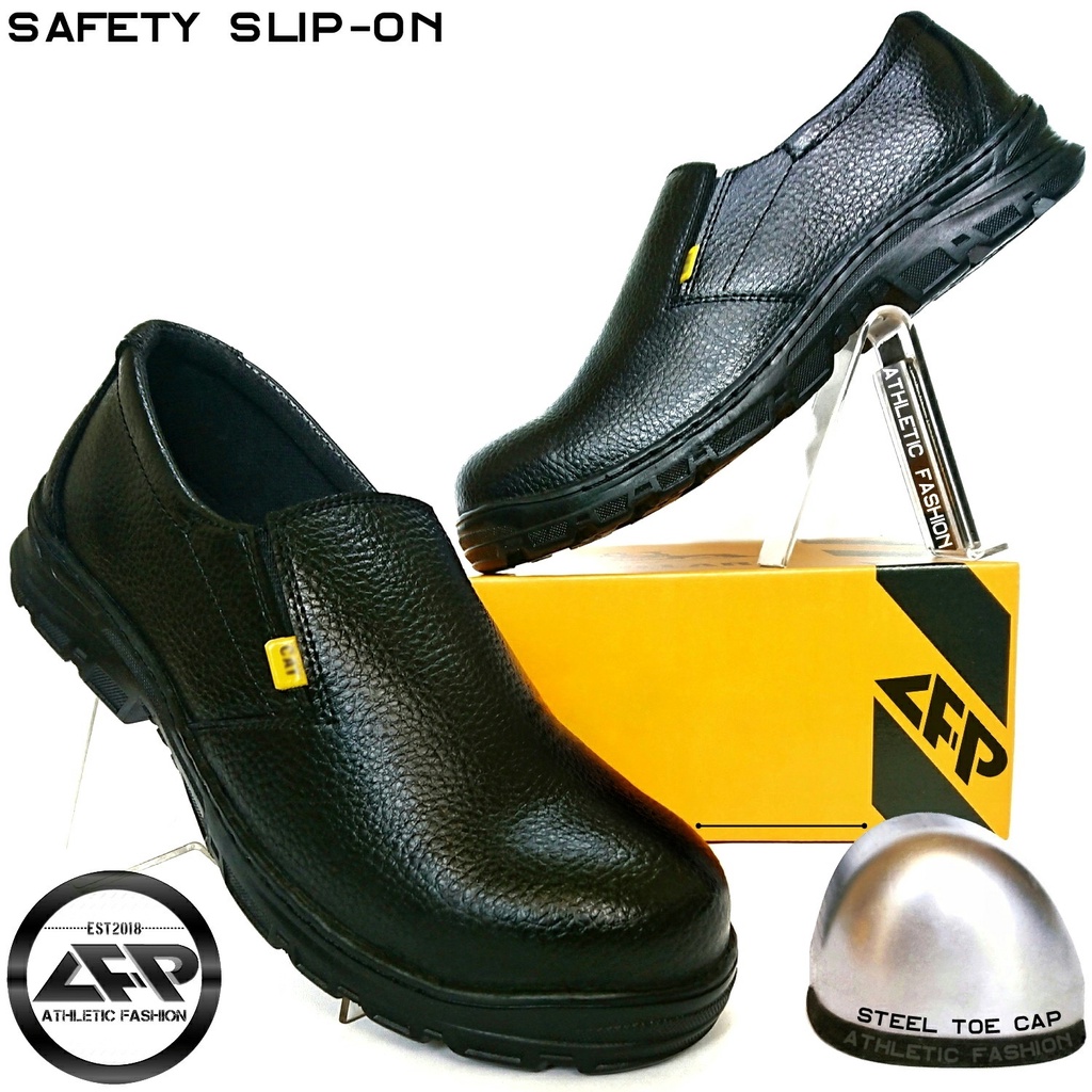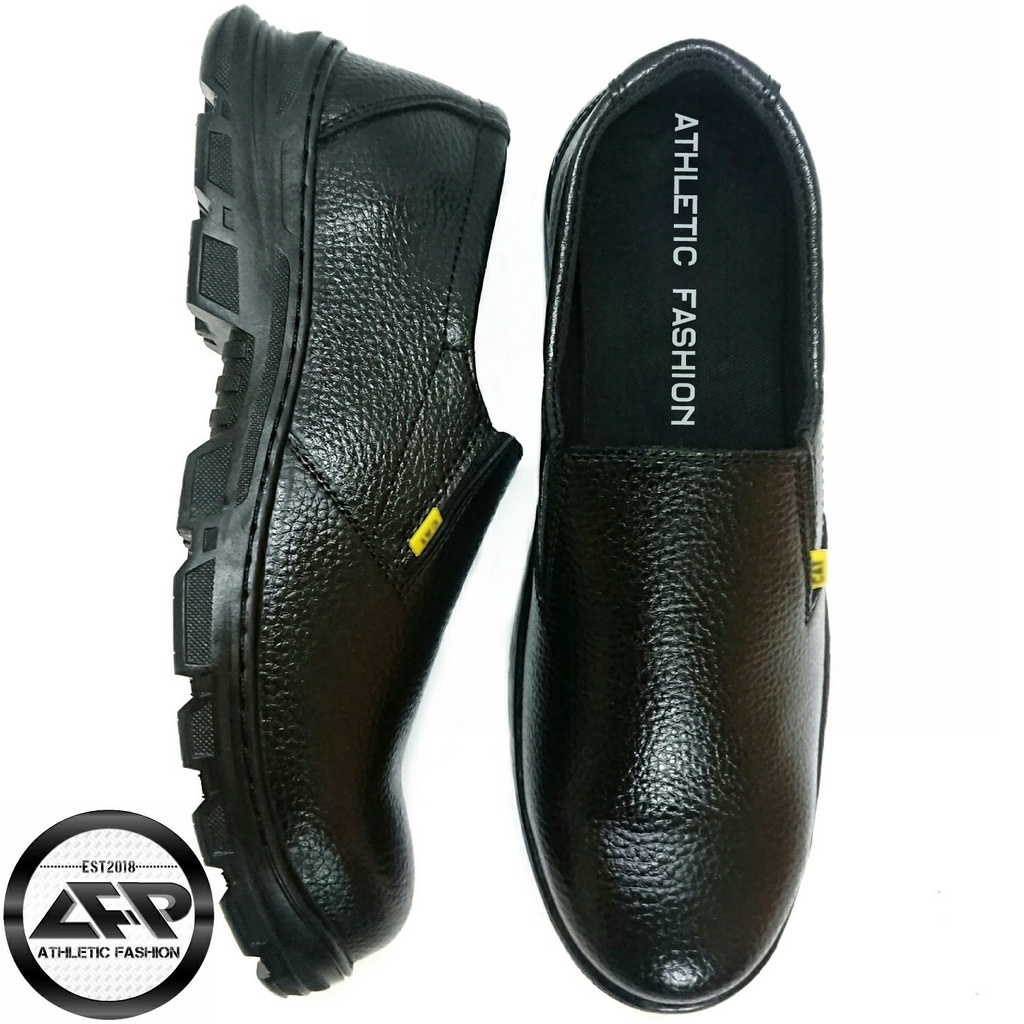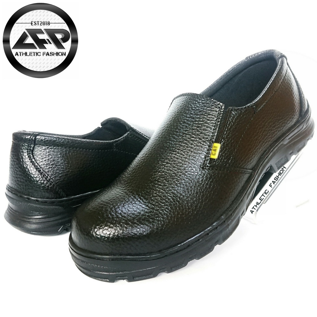 Sepatu Safety Slip On Pria Wanita Kerja Proyek Lapangan Outdoor Spbu Ujung Besi Import