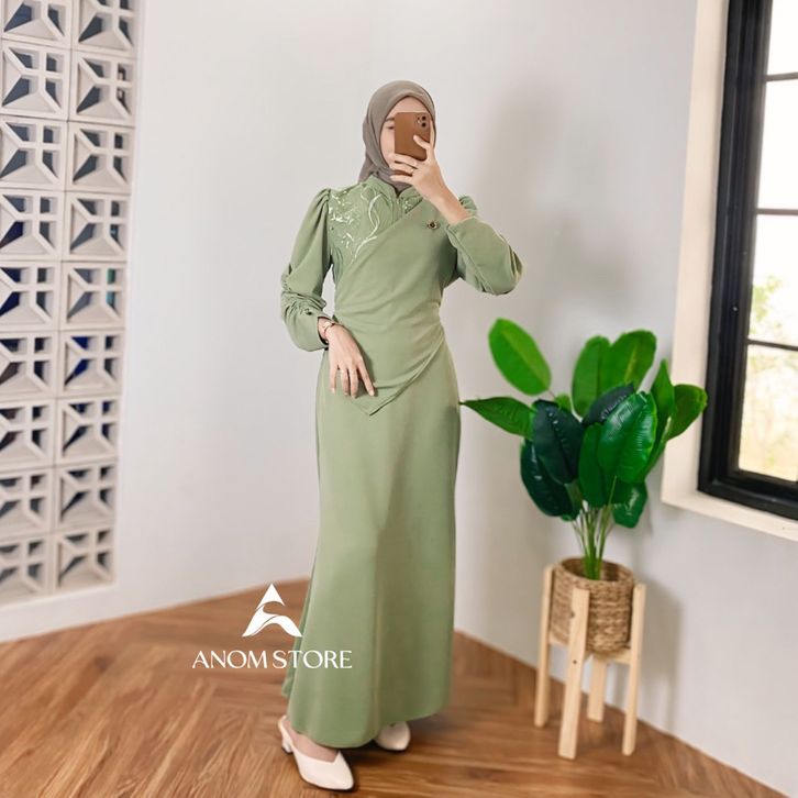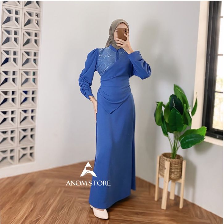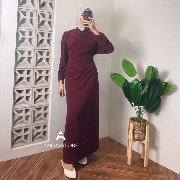 dinara dress knit mix brokat by anomstore - gamis duyung wanita simpel melar kekinian mewah body fit