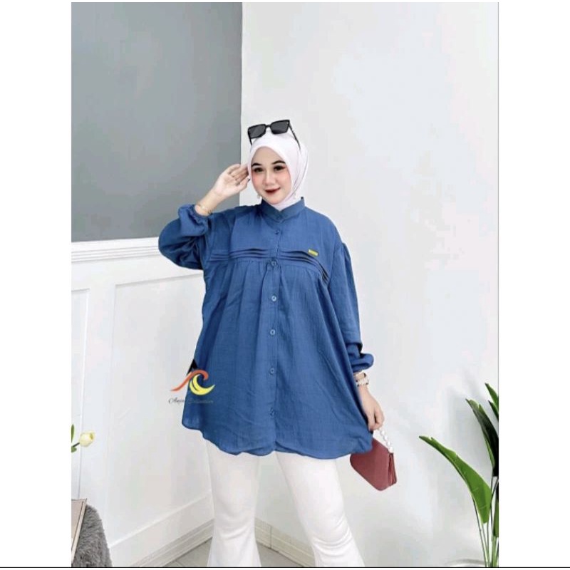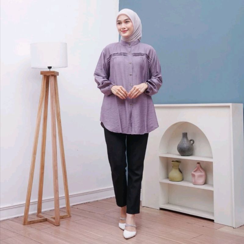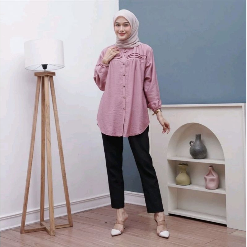 Kemeja Wanita Bahan Polo Linen Tami Blouse Atasan Wanita Full Kancing LD120
