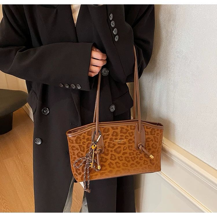 [IBAGS] Tas Bahu Wanita Fashion Brand KOSK Shoulder Bag Corak Motif Leopard Premium Kekinian 18055