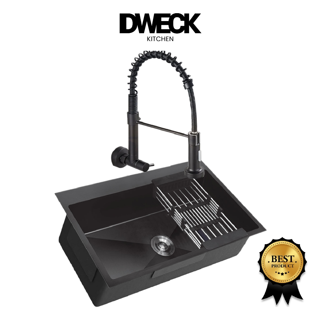 DWECK - Kitchen Sink Black Small Stainless Steel 304 Paket Kran Instalasi Dinding