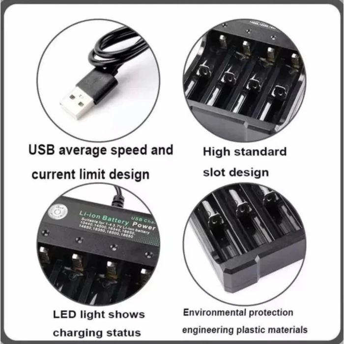 ALAT RECHARGE CHARGE FAST CHARGER BATERAI BATTERY ISI ULANG 4 SLOT USB 4.2V 2A AA AAA 14500 18350 18650 LI-ION LED INDIK