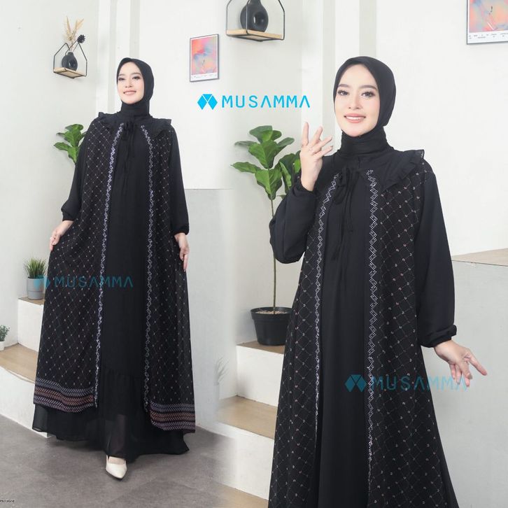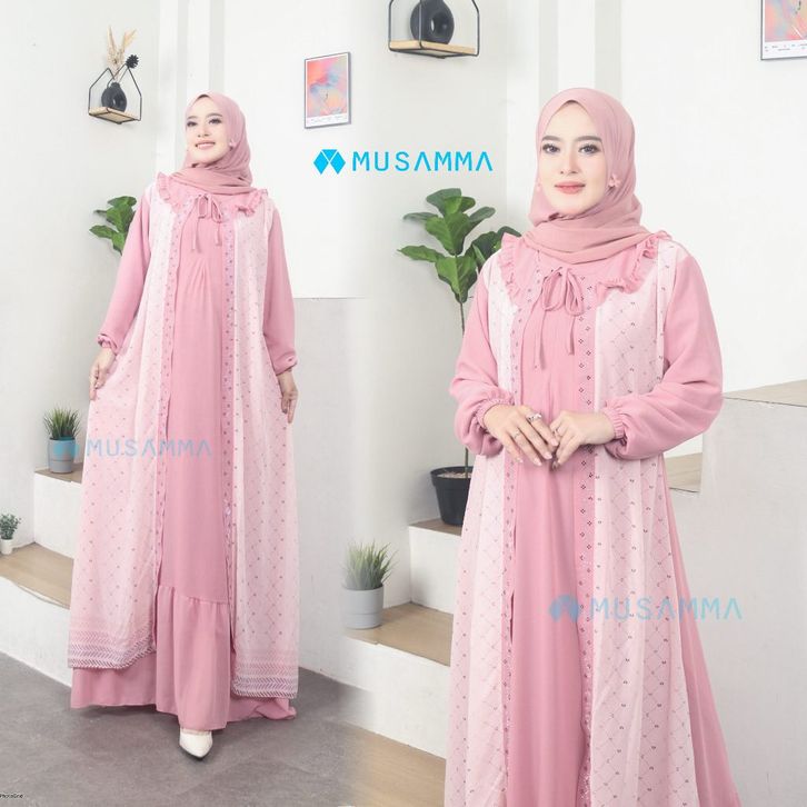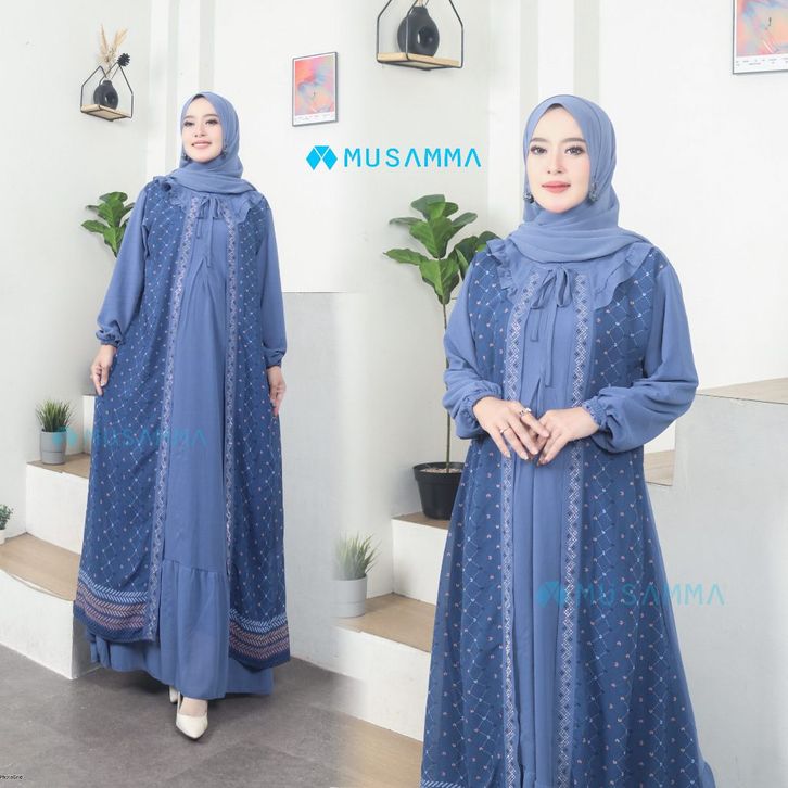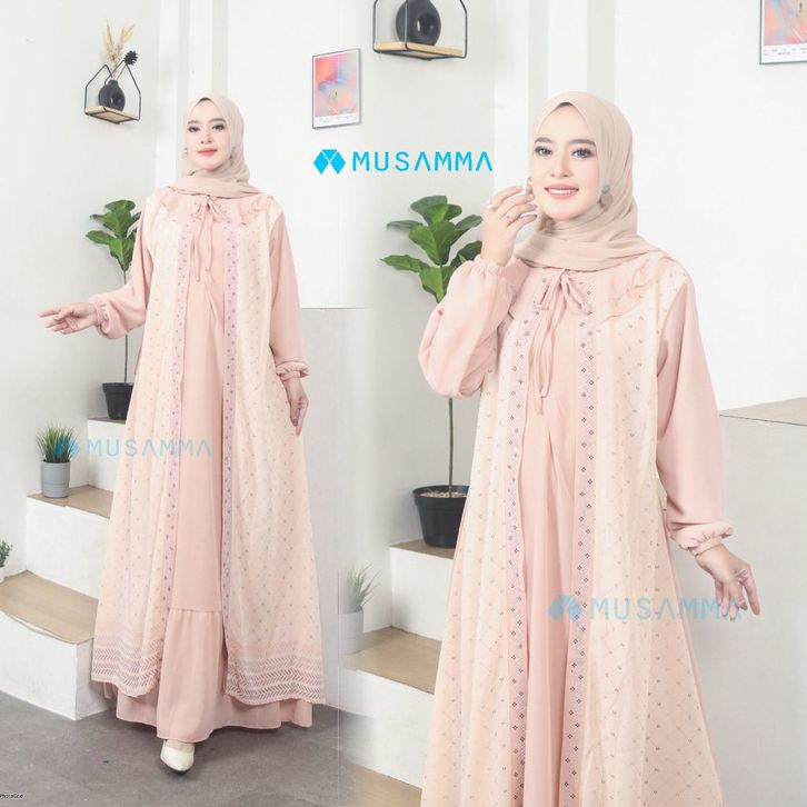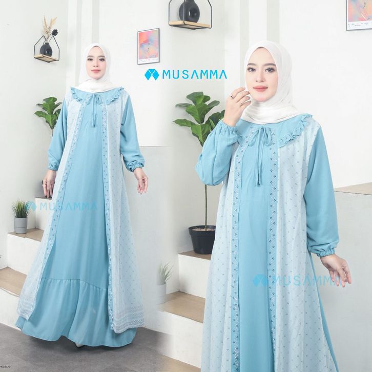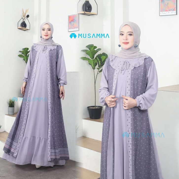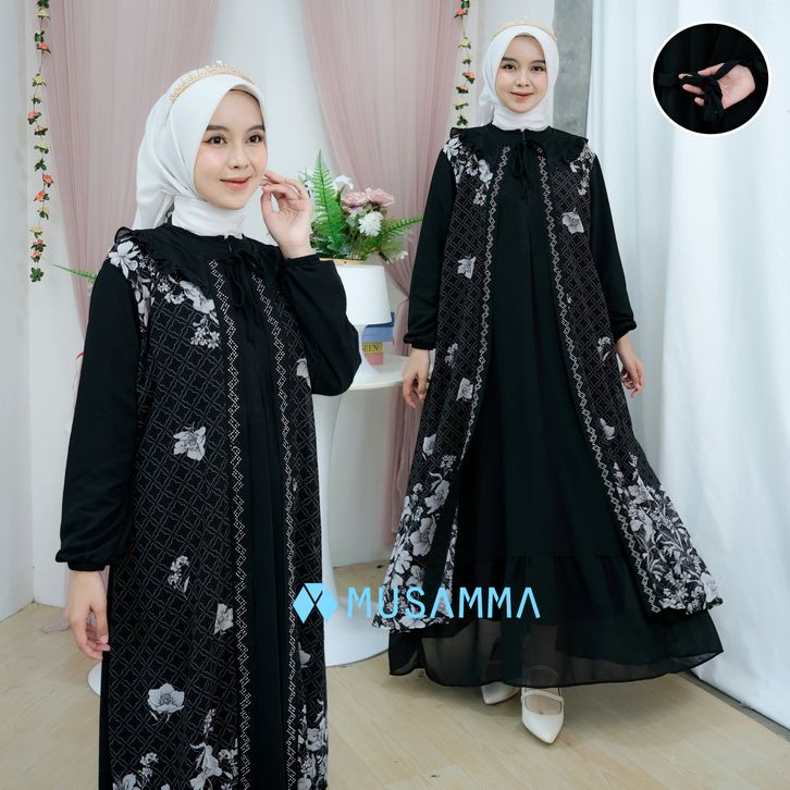 saskia dress - gamis ceruty polos mix ceruty print full furing busui dan wudhu friendly
